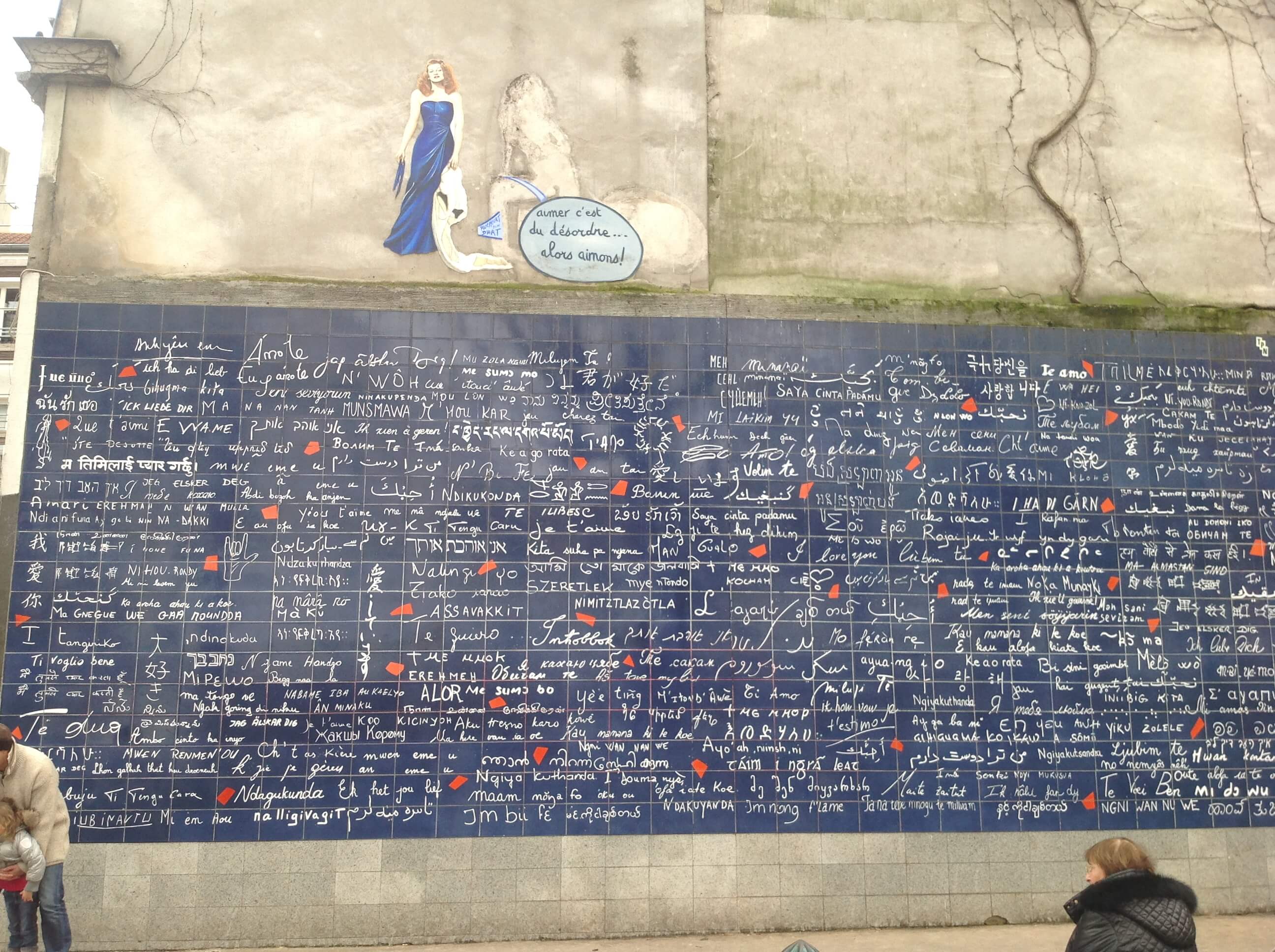 Đây thật sự là một cuộc chạy đua thời gian thật sự, tụi mình có 4 tiếng để tham quan cả 2 nơi này, sau đó phải ra sân bay liền để kịp chuyến bay. Để tới được cái đồi Montmartre này tụi mình phải đi qua quận 20, quận của người da đen, đi trên đường nhìn thấy các shop của người da màu và họ đi trên đường tụi mình sợ bị cướp, đi trong trạng thái đề phòng cao. Nhưng cuối cùng cũng đã checkin được bước tường “I love you” bằng tất cả các ngôn ngữ trên thế giới và mình phát hiện ra Tiếng Việt có đến 2 dòng “Anh yêu em” và “Em yêu anh” nếu tụi Pháp biết thì tụi nó chỉ cần ghi “tao yêu mày” là không cần hai đại từ nhân xưng kia rồi =)).
