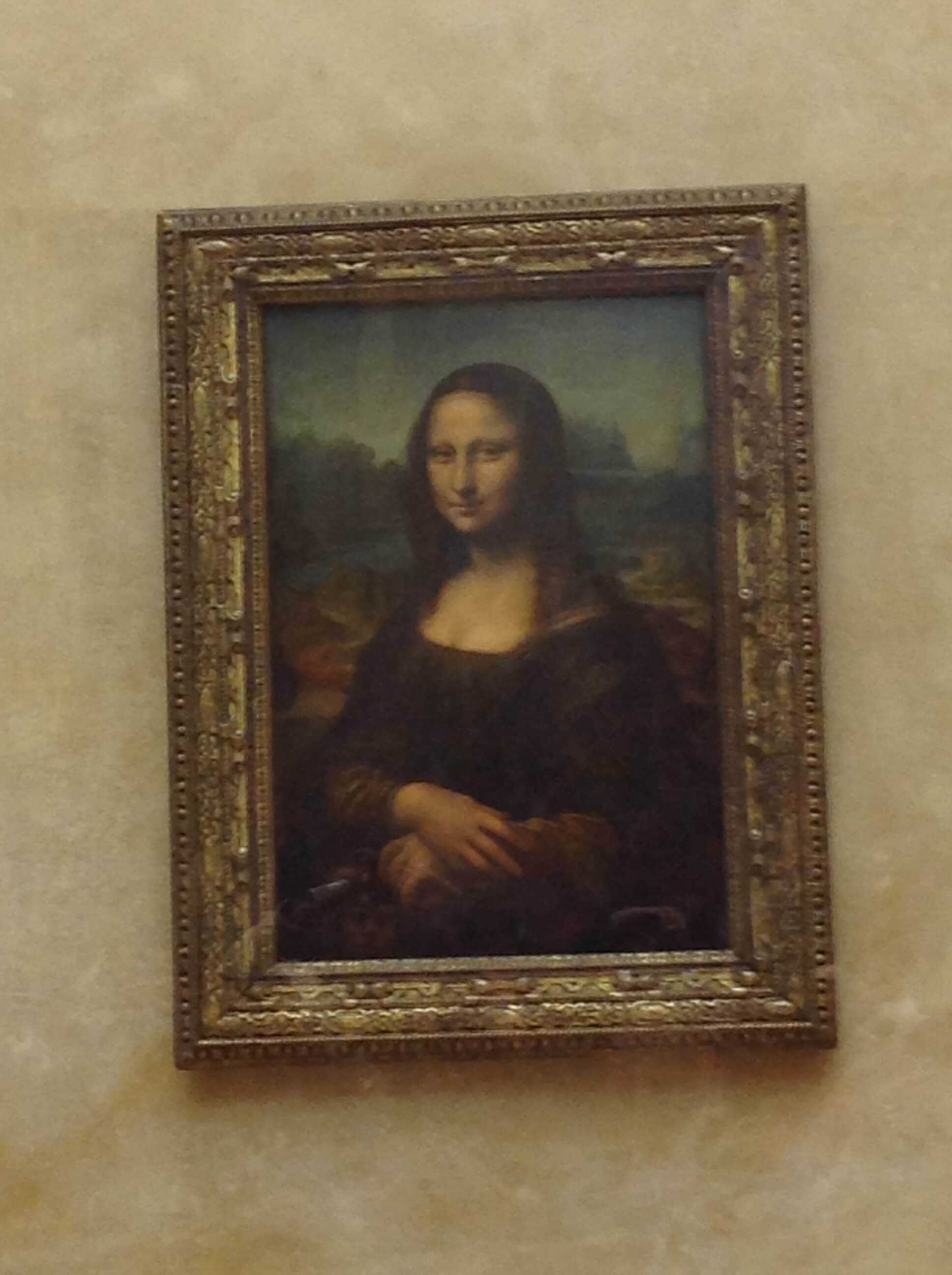 Bảo tàng Louvre, nơi chứa di sản thế giới với những bức tranh của các danh họa cả thiên niên kỉ, cả các tác phẩm điêu khắc đá, bảo vật và những tài liệu cổ, nếu đi từng bức hình từng chi tiết mất ít nhất 10 ngày để khám phá hết. Vậy mà tụi này chỉ còn 1 giờ để tham quan, giờ làm sao đây. Đi bảo tàng mà đi đổ đi tháo, cuối cùng vì danh dự cũng chen lấn chụp được hình với “Mona Lisa giả”, chứ thiệt mình nghĩa bức họa năm 1503 cả mấy trăm triệu đô mà để thanh thiên bạch nhật như vầy thì làm sao mà thiệt được. Hàng Fake chắc luôn. Quá đáng.