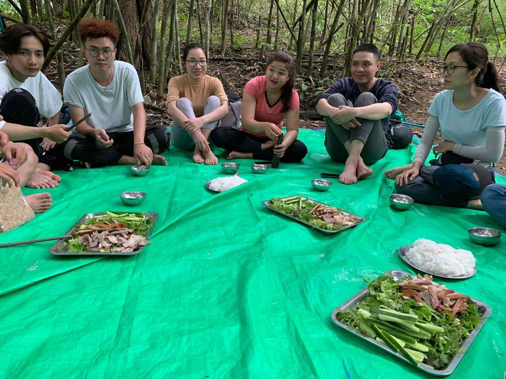 Tới được quán, ăn tô bún bò như được sống lại. Liền sau đó, mọi người được hướng dẫn tour thông tin về hành trình, đứng khởi động một chút trước khi chính thức bắt đầu trekking Tà Năng. Nhóm đi khá đông nên chia làm 2 nhóm nhỏ mỗi nhóm 12-14 người, xuất phát cách nhau 30 phút.