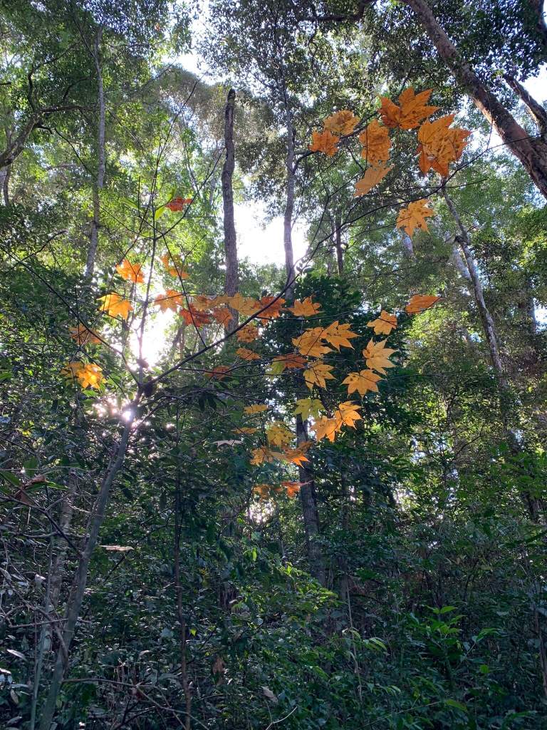 Chuyện bên lề : Thời điểm đi Bidoup được chia như sau: Tháng 4-7 mùa lan rừng nở, tháng 11-6 mùa xem chim với hơn 221 loài chim đặc hữu (mình được giới thiệu nhiều về con chim sẻ thông hậu vàng), tháng 11-12 là mùa lá phong đổi màu. Mặc dù đi đúng tháng 12 nhưng chỉ thấy được lá phong đổi màu nhưng không nhìn thấy con chim nào. Chắc có lẽ do quá ồn ào nên tụi chim đi trốn hết rồi