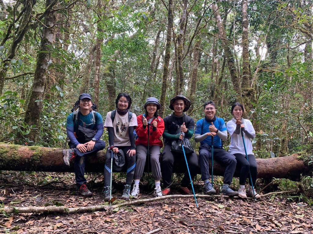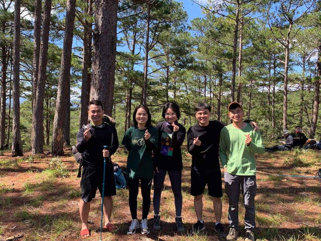 Sau khi ăn sáng xong, cả nhóm lên xe di chuyển về nơi tập trung để chinh phục Bidoup. Nhóm mình có khoảng 13 người nhưng có tới 3 bạn hỗ trợ nên cũng không sợ bị lạc mất nhau giữa chốn rừng núi này. Bidoup leo rất “dễ” chỉ có 1 con dốc duy nhất, từ đầu tới đỉnh, thật sự dễ lắm. Với combo kèm theo trời lạnh, ẩm ướt thì trái tim cứ đập loạn nhịp liên tục, đây có thể là tín hiệu vũ trụ, đã là tín hiệu thì phải dừng thôi (sự lươn lẹo của mấy đứa yếu mà hay ra gió :v)