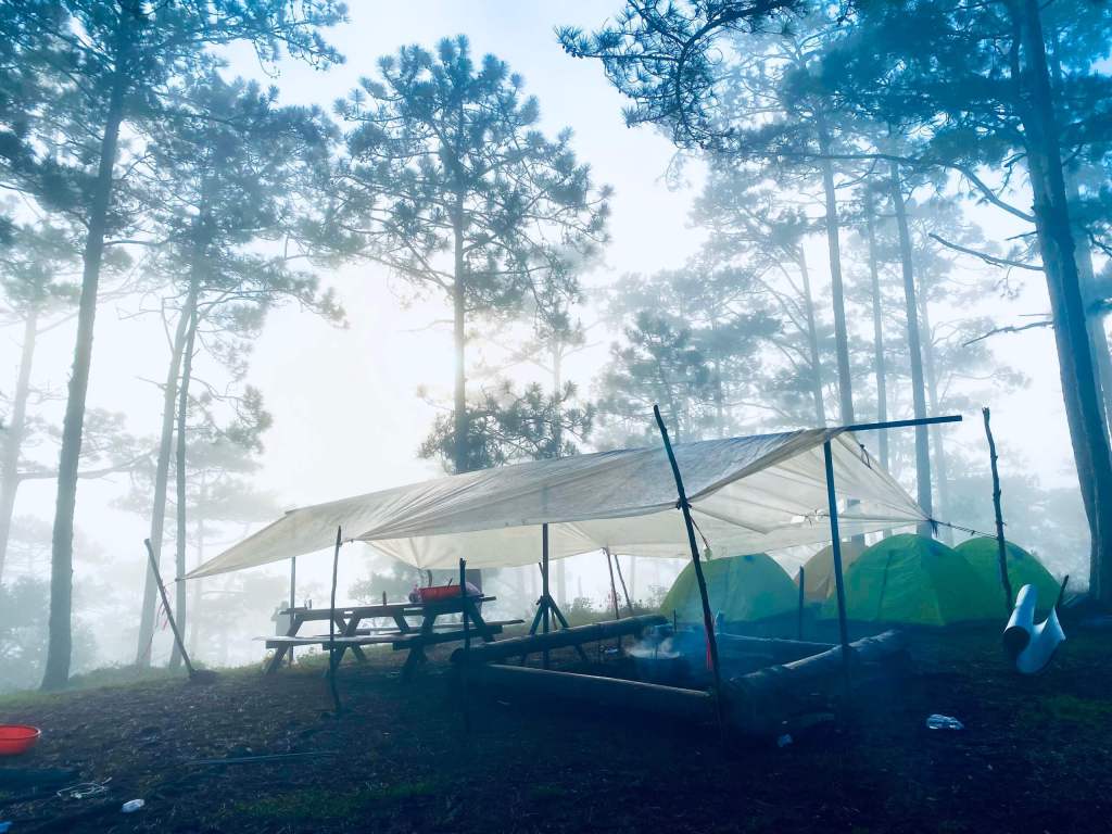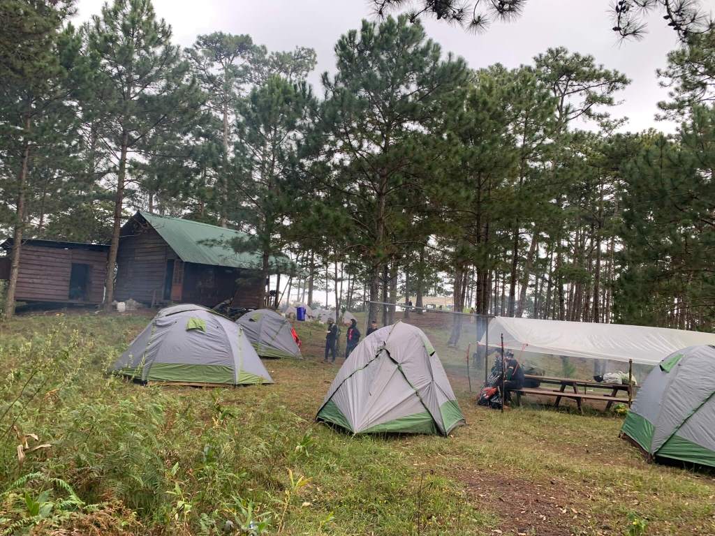 Khoảng 4h mấy chiều thì tới bãi trại, đây là khu vực vườn quốc gia đầu tư cho tất cả các đoàn tour nghĩ qua đêm nên rất khang trang và sạch sẽ, có hẳn một khu nhà vệ sinh, hệ thống nước được dẫn từ con suối gần đó. Mọi thứ đều tuyệt vời chỉ có nước lạnh quá, tắm nhưng không dám xối thẳng từ trên đầu xuống chân, tắm xong thì 2 thần kinh thái dương giựt liên tục, kiểu đẩy máu lên đầu không nổi, kèm theo cảm giác như sốt nhẹ. Chỉ hết khi sau đó được ăn và uống vài ly rượu.