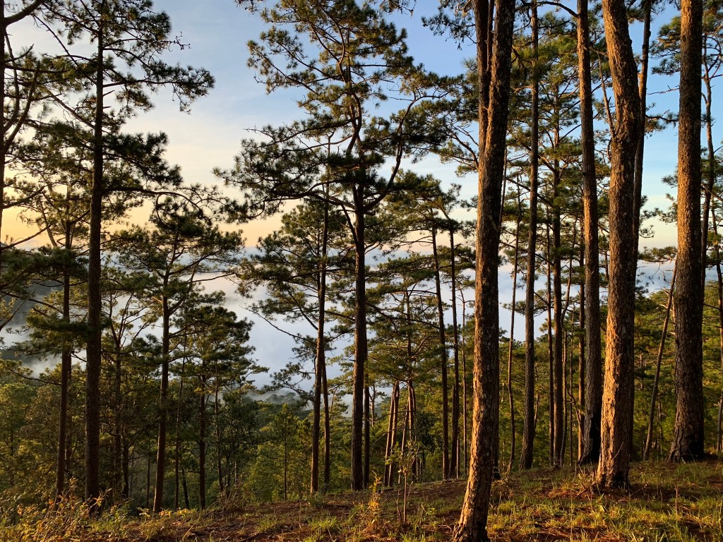 Đoạn đường xuống núi khá bằng phẳng, không dốc như ngày hôm qua nhưng cũng làm “mệt mỏi” đôi chân; không dừng nhiều nhưng vẫn ở “cuối bền vững”. Từ đây không còn là băng rừng thường xanh nữa mà thay vào đó là rừng thông hoàn toàn.