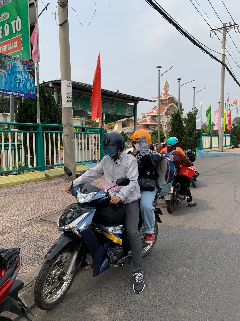 Bất ổn số 2: Nghe nói Hân chở chị Thủy từ Tân Bình qua mà “đụng nhẹ” xe người ta, chạy vào các góc chết của mấy cái xe tải, rồi hơi giựt giựt làm chỉ hoang mang, nên chị ngỏ lời để chỉ chở nhưng nó từ chối 😛 khi tới rừng cao su thì chỉ chuyển qua đi chung với mình. Mình cũng lo sợ chỉ ngồi xe mình cũng hoang mang nữa thì chết kkk.