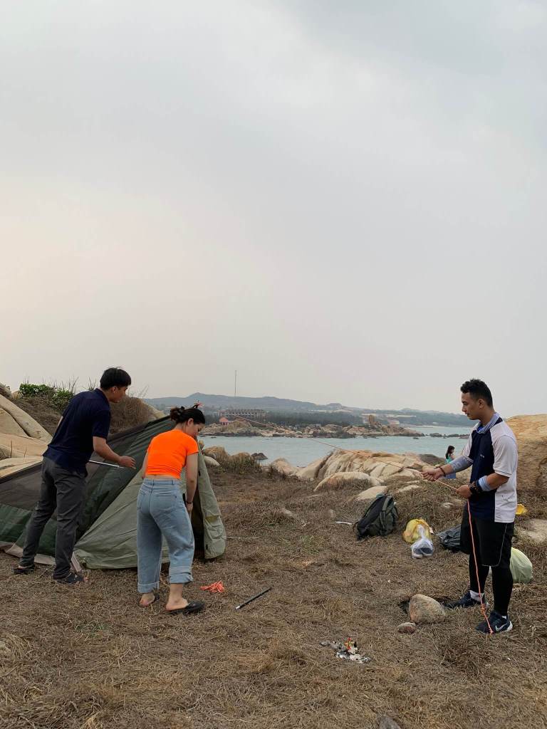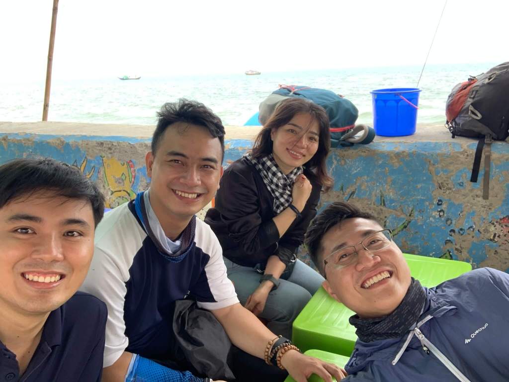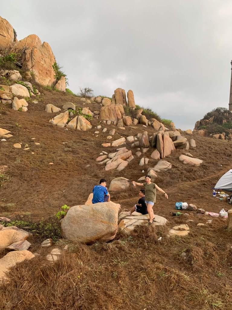 Lúc đầu mình nghĩ rằng trên đảo sẽ hoang sơ, không có gì cả nhưng không tại đây có khoảng 5 chú hải quân bảo vệ đảo, có chỗ mua nước, tắm rửa, nhà vệ sinh đầy đủ… và chỗ cắm trại cũng có 3 nhóm khác tới trước nhóm mình, dựng xong lều, đang chụp hình, tham thú xung quanh…