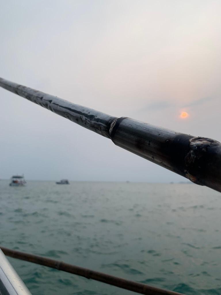 Bất ổn số 3: Ngày giông bão mây kéo tới đen thui, che luôn mặt trời, nhóm lật đật ra nhóm lửa để nấu mì và nướng thịt ăn sáng, đang làm nửa chừng thì mưa rơi, đứng vịn tấm bạt che mưa đừng tạt vào cái bếp than đang nhen nhóm cháy. Vừa ăn sáng xong thì mưa cũng lớn dần, cả nhóm vào lều ngồi co ro khoảng 30 phút sau thì tạnh, nhanh chóng ra ngoài thu xếp mọi thứ nhanh nhất có thể để rời khỏi đảo. Ngay lúc đo chú Tân bắt đầu đau bụng và kéo dài chuỗi WC cho tới khi ảnh ổn ổn mới rời khỏi đảo.