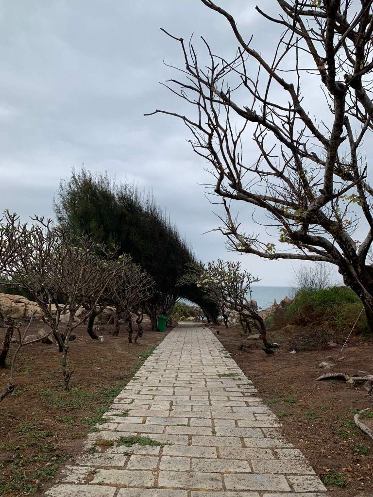 Sau đó mình có nghe các anh tại đảo nói rằng, ngoài đảo khá ít mưa, mặc dù đất liền mưa nhưng tại đảo lại không, các cơn mưa đa số tới và đi khá nhanh, mình thường gọi các cơn mưa này là “mưa mây”. Có một điều thú vị tại đảo Kê Gà này là cây cối mọc nghiêng về một hướng do gió thổi quá mạnh.