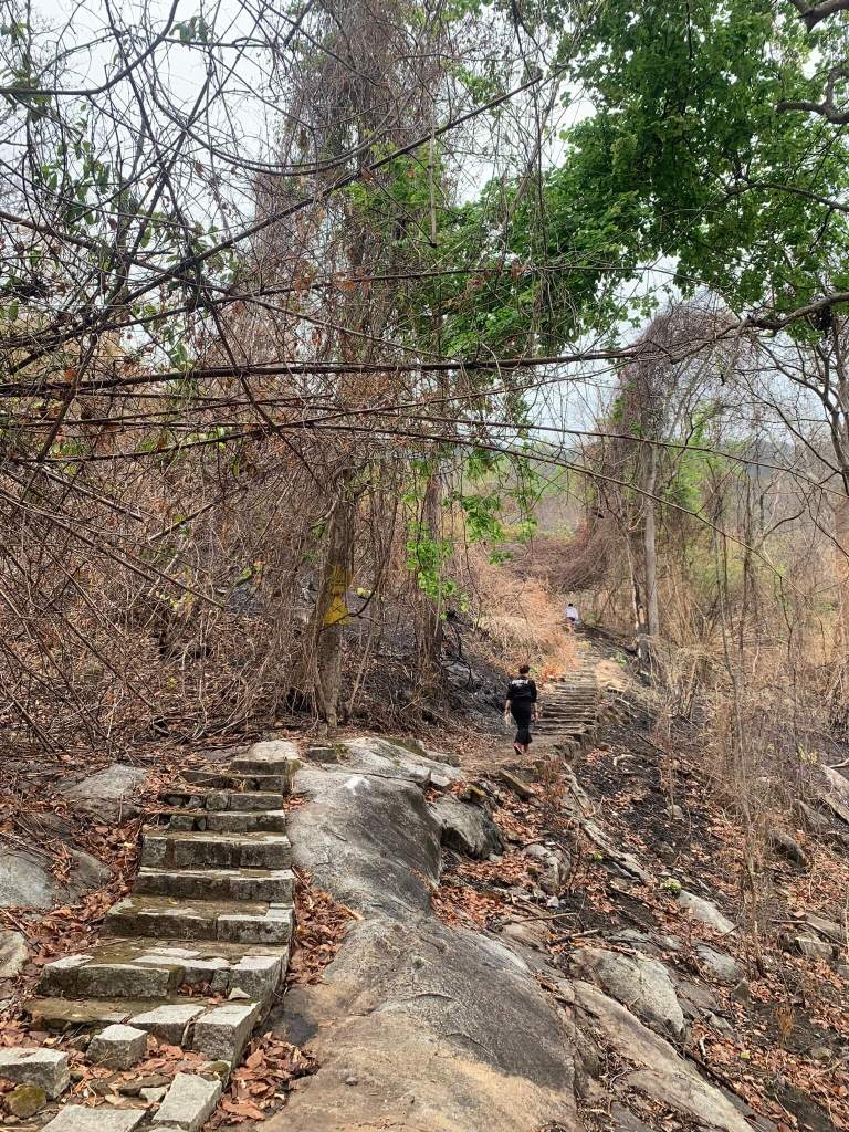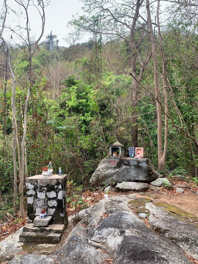 Cuối cùng cũng rời khỏi đảo Kê Gà, 3 chiếc xe hướng thẳng về núi Tà Cú. Có 2 cách để lên núi: 1 là đi cáp treo của TTC, 2 là đi bộ men theo đường mòn khoảng 2km. Do bụng Tân còn yếu qua đi không nổi nên chỉ có 3 người đi, lên thì đi bộ đi khoảng 1 tiếng rưỡi, xuống đi cáp để ăn trưa ở chân núi rồi về Sài Gòn cho kịp thời gian vì cũng đã quá trưa khá nhiều rồi.
