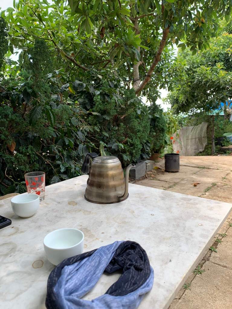 Cường, bằng tuổi mình, nghe nói chị Anh và Cường biết nhau từ khi chị bỏ Đà Nẵng vào Đà Lạt làm homestay nhưng tới giờ 2 chị em mới có kế hoạch chung, mình không rành chi tiết chỉ nghe vậy thôi. Cường rất rành về cà phê, cách pha cà phê, cách thưởng thức cà phê, và phân biệt được nhiều loại cà phê khác nhau. Có lẽ vậy mà cà phê vườn của bạn có yêu cầu cao hơn chỗ khác, kén khách hơn, giá trị cũng cao hơn.