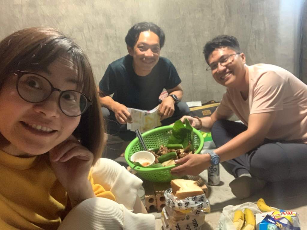 Hơn 7h30 thì bữa tối cũng xong, bày biện, ăn uống, nói chuyện tới hơn 9h30 tối. Chị Anh quyết định ngủ trên võng, mình tận dụng cái lều mang theo căng lên ngủ trên căng gác 4 bề gió thổi, vậy nên chủ nhà đành ngủ chăn êm nệm ấm một mình dưới phòng.