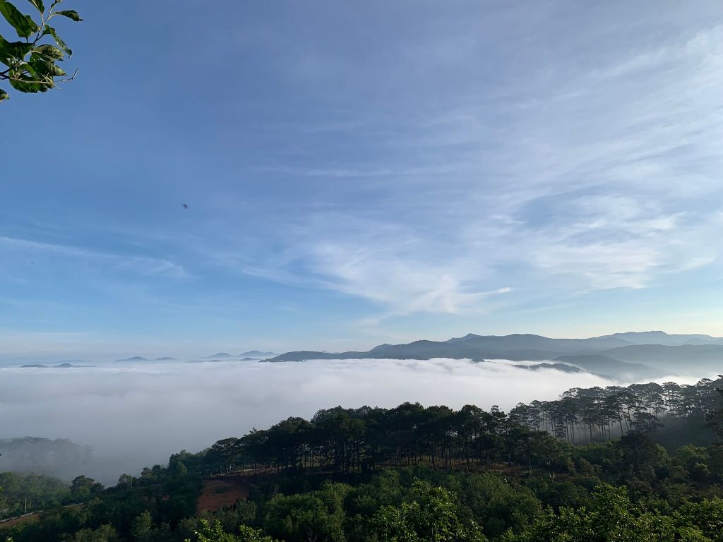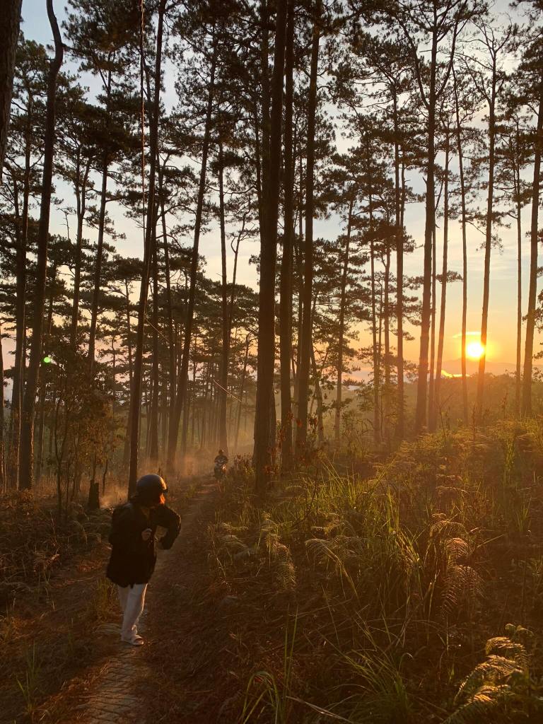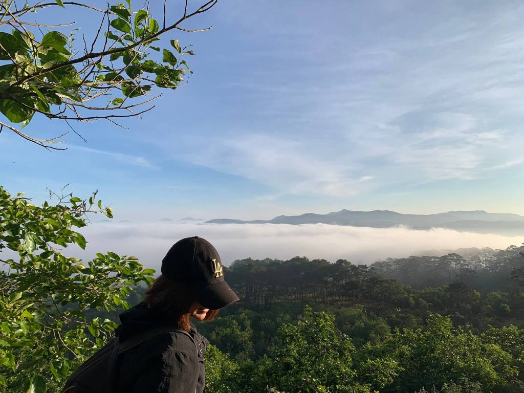 6h hơn thì cả nhóm cũng tìm được 1 vị trí bên dưới cái cối xoay gió, ngồi ngắm bình minh nhìn mây trôi xuyên qua rừng thông, có lẽ đây là lần đầu tiên mình săn mây thành công ở Đà Lạt, những lần trước mình săn mây trên giường không.