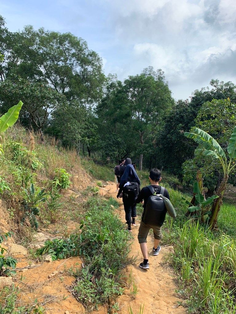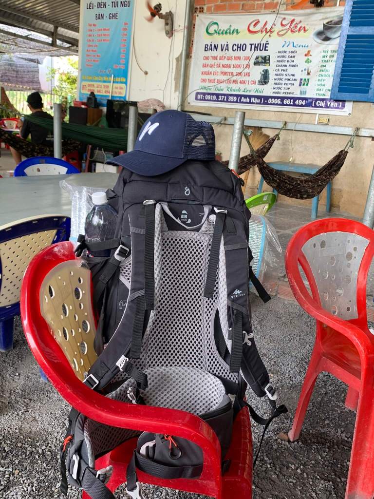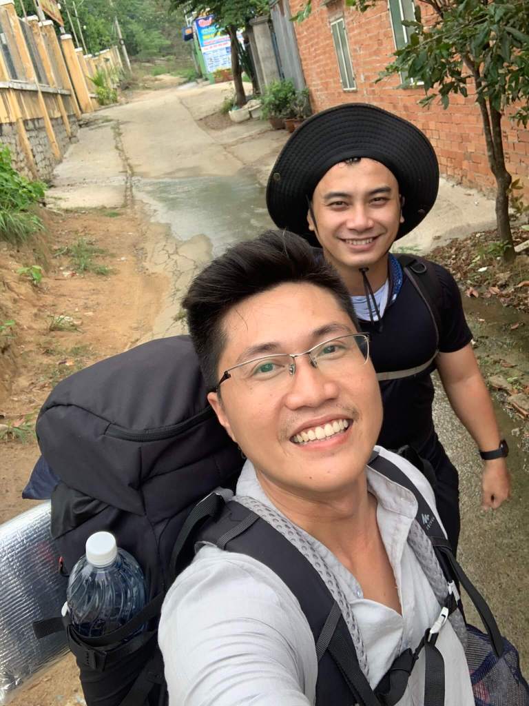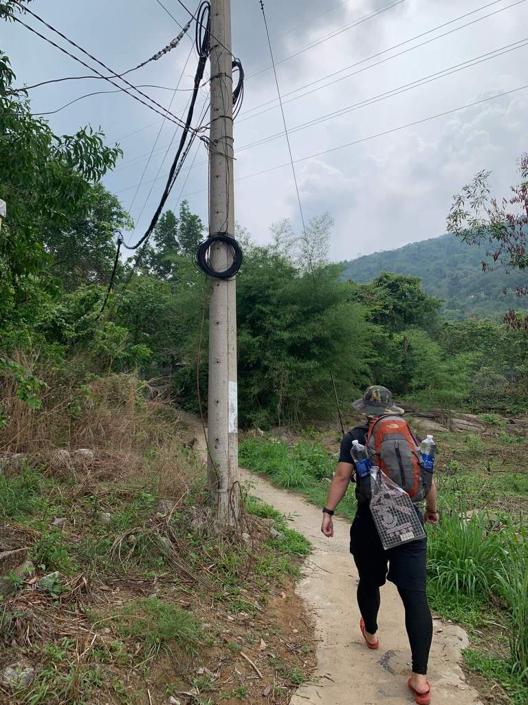 Tự rút kinh nghiệm của các đợt cắm trại trước là không mang quá nhiều, chỉ mang đủ đồ dùng thôi nhưng sự thật phũ phàng đồ ăn chuẩn bị đủ 4-5 người ăn, nước thì mỗi thằng mấy chai 1 lít rưỡi, kèm theo các thứ lặt vặt, linh tinh… vì lẽ đó 2 cái ba lô thật sự trở thành “gánh nặng” theo mọi cách diễn dịch có thể. Chuyến leo núi bỗng từ level đơn giản tăng lên cấp độ try hard, cứ đi khoảng 5-7 cây cột là 2 thằng dừng lại và thở… tới khoảng cột điện số 80 thì mới bắt đầu đi 10 cột dừng lại một lần. Cũng không nhớ là dừng lại bao nhiêu lần, nhưng chỉ biết tim đạp rất nhanh, mồ hôi thì chảy ướt áo, ướt quần, tới nơi lầy đồ vắt nước chảy phát âm thanh tỏn tỏn.
