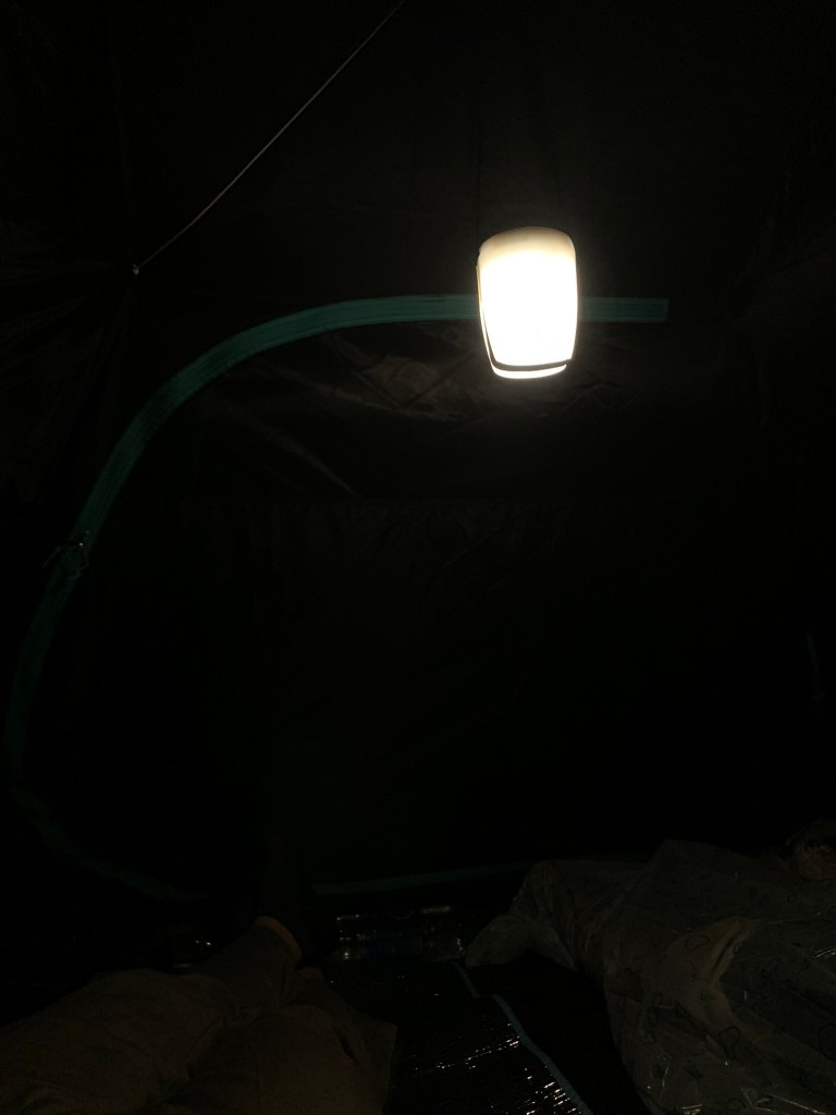 Khuya rồi nên 2 anh em vào nghỉ ngơi, khoảng 2h sáng chân lạnh quá, nằm quay qua quay lại tìm cách để giữ ấm, cuối cùng quấn người vào cái tấm trải lót cách nhiệt, một chút mình chìm sâu vào giấc ngủ luôn. Còn chú Tân thì cuộn vào cái áo mưa mang theo..