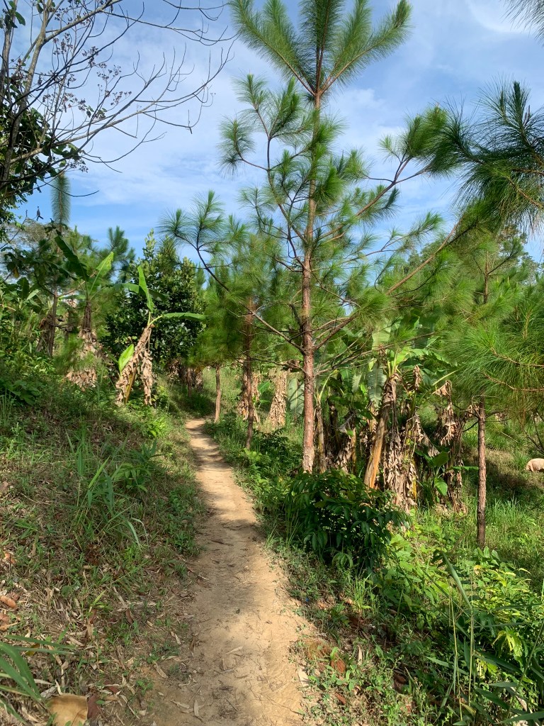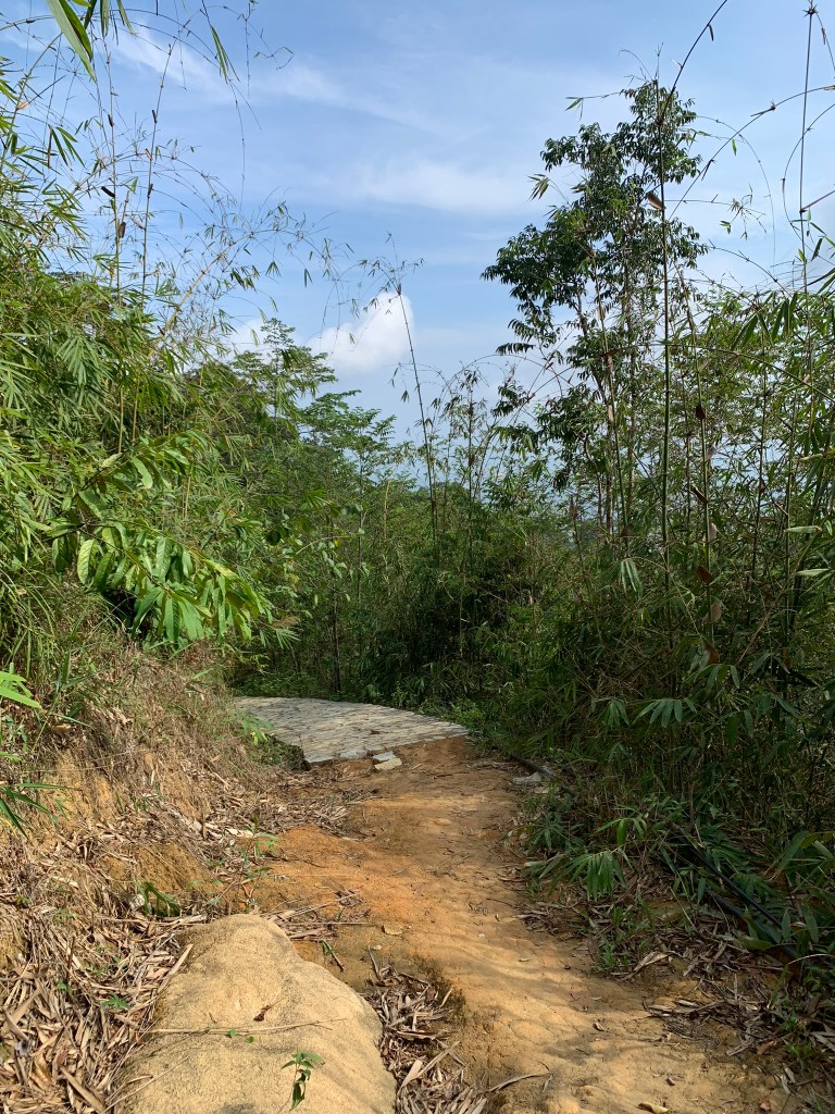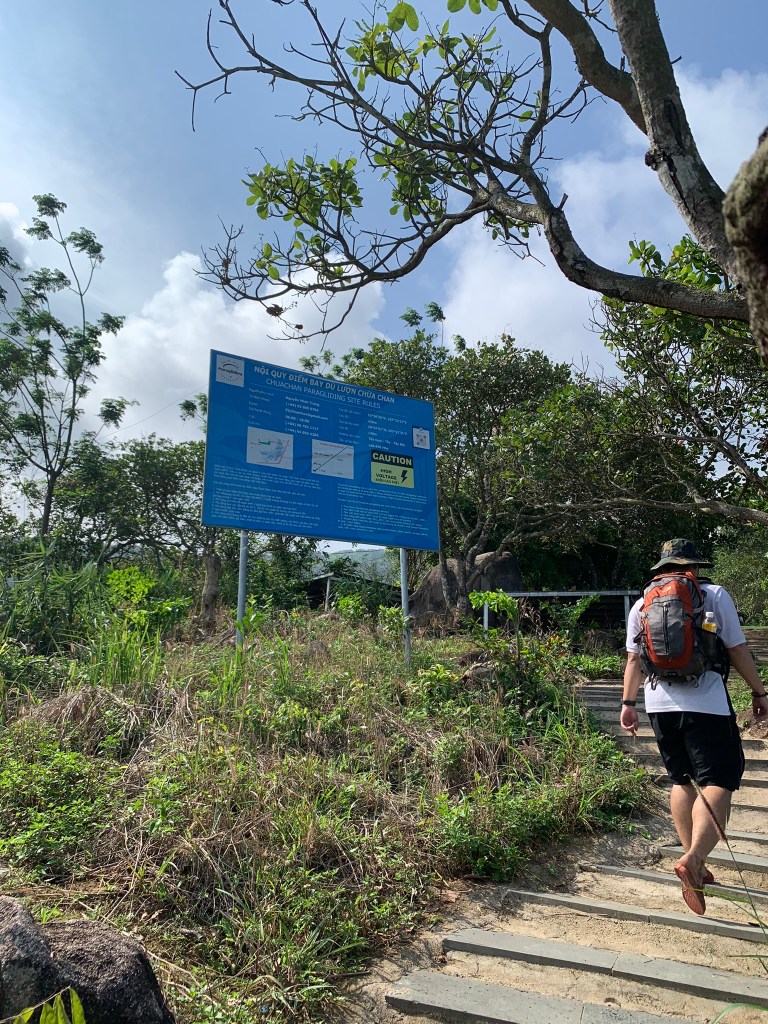 Đường giờ chỉ xuống dốc thôi nên khá dễ, băng qua rừng tre, tràm trúc sau đó đi men theo đường thông (còn hơi nhỏ) thì hiện ra đường nhựa, sau đó tới cáp treo, men theo công viên thì lên chỗ nhảy dù.