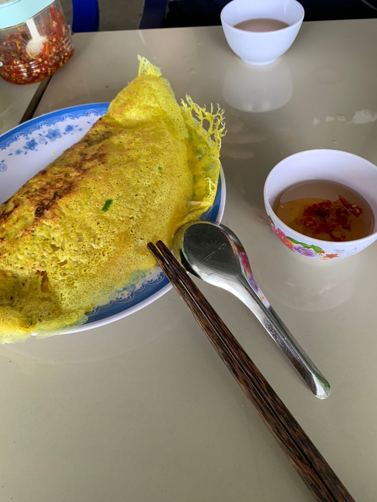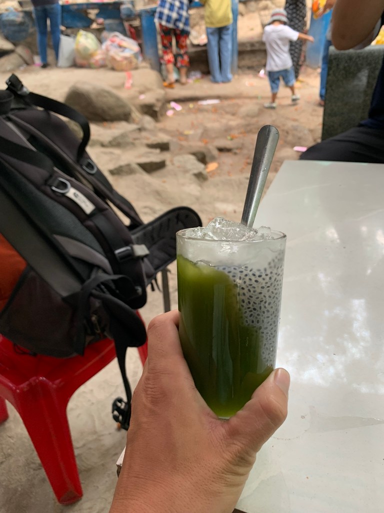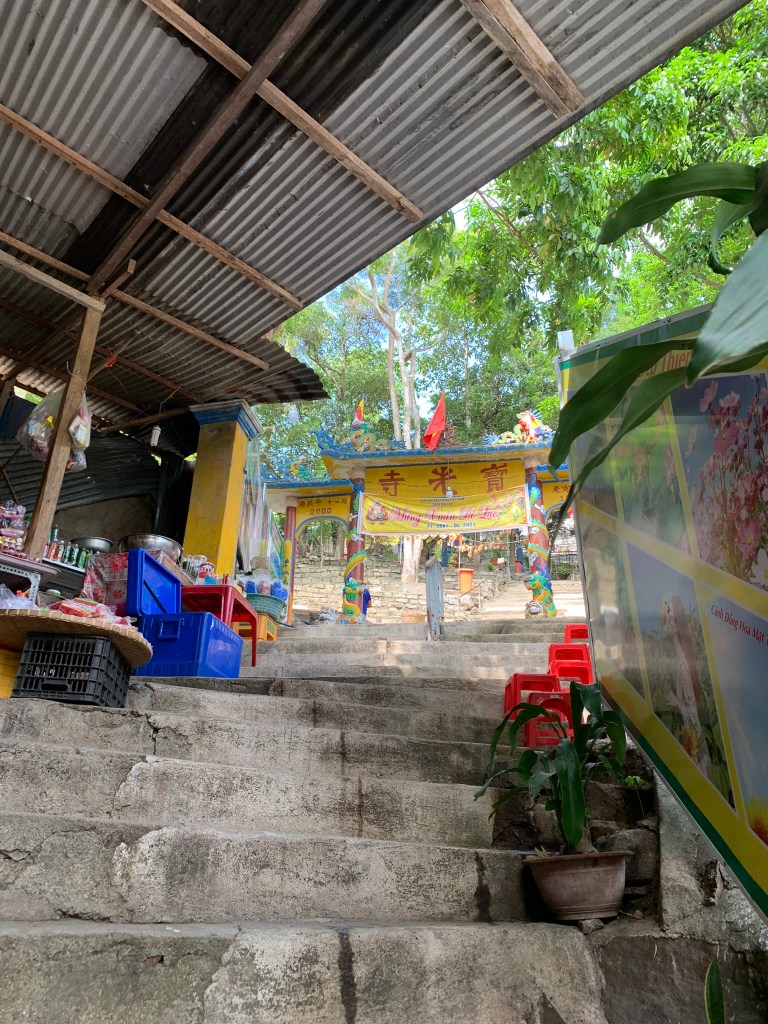 Tham thú chút 2 anh em nằm nghĩ mệt ăn bánh xèo, dạo xung quanh chùa, thăm cây 3 gốc Khoảng 1h chiều đã có mặt dưới chân núi, đi xe trung chuyển về đường Cột Điện.