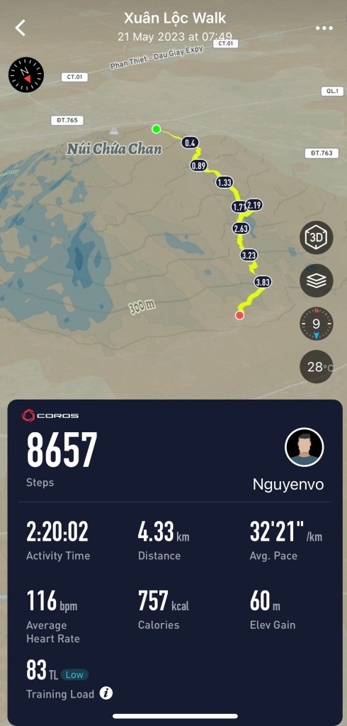 - Đường Cột Điện: có 125 cột, đi từ cột 20 tới cột 145 (theo google) khoảng cách thực tế mình đo được là khoảng 2,59km từ chỗ bắt đầu (quán Cô Yến núi Chứa Chan) tới khi hạ trại (gần trạm KS 11), thời gian trung bình: 2 tiếng rưỡi tới 3 tiếng, nếu đi nhanh thì khoảng 2 tiếng. Chỉ có 1 con dốc duy nhất, nên mọi người cứ tự tin leo lên nha haha.