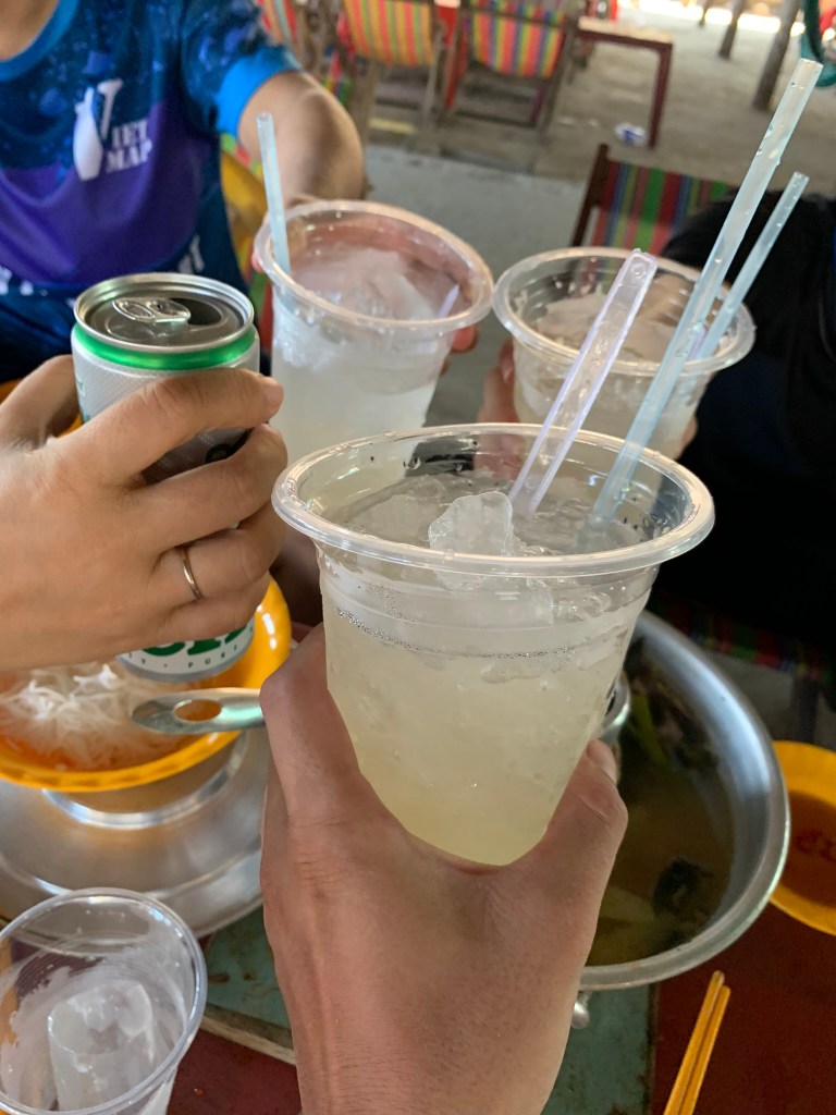Do trên đường uống quá nhiều nước: nước mía, revive, nước suối, dừa nước, sâm lạnh, nước ngọt. Kết quả là không ăn trưa nổi luôn, gắp được mấy miếng cả nhóm nghĩ ngơi nằm ngủ luôn.
