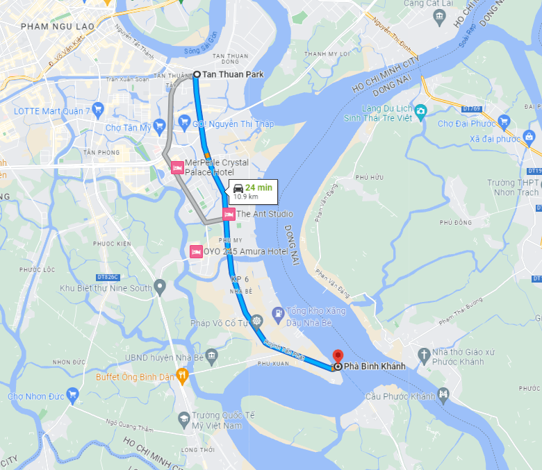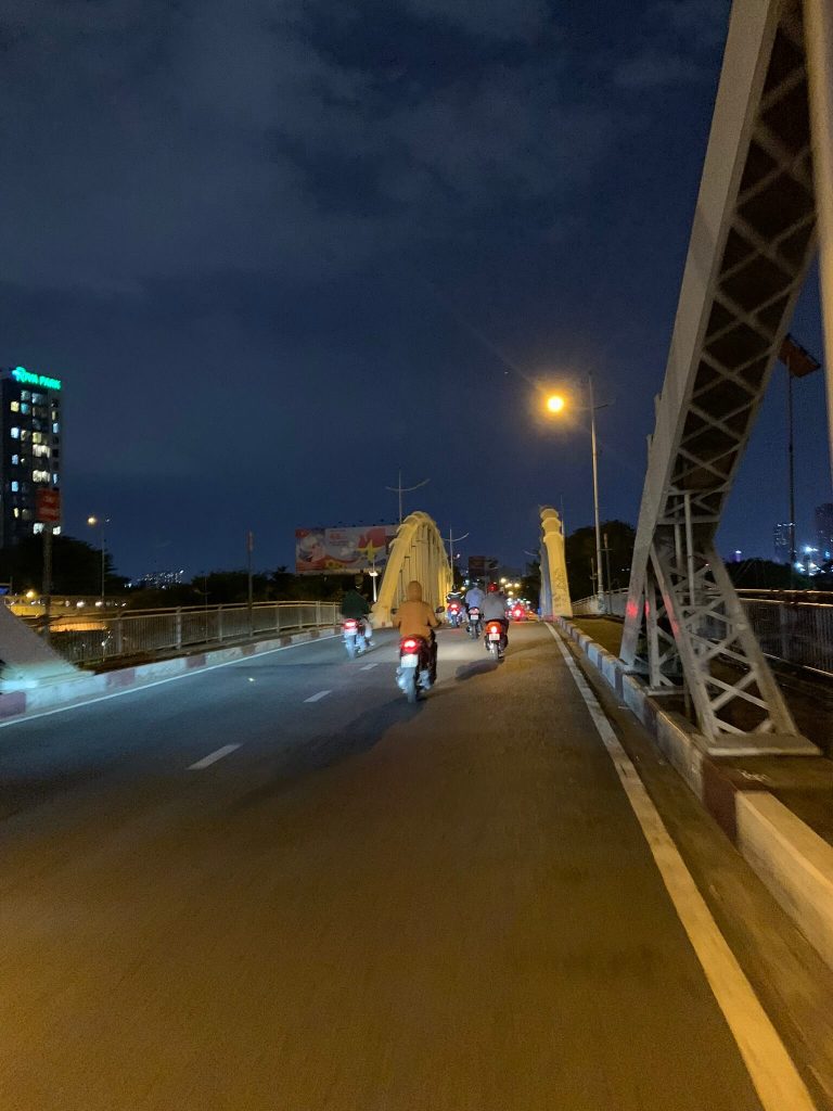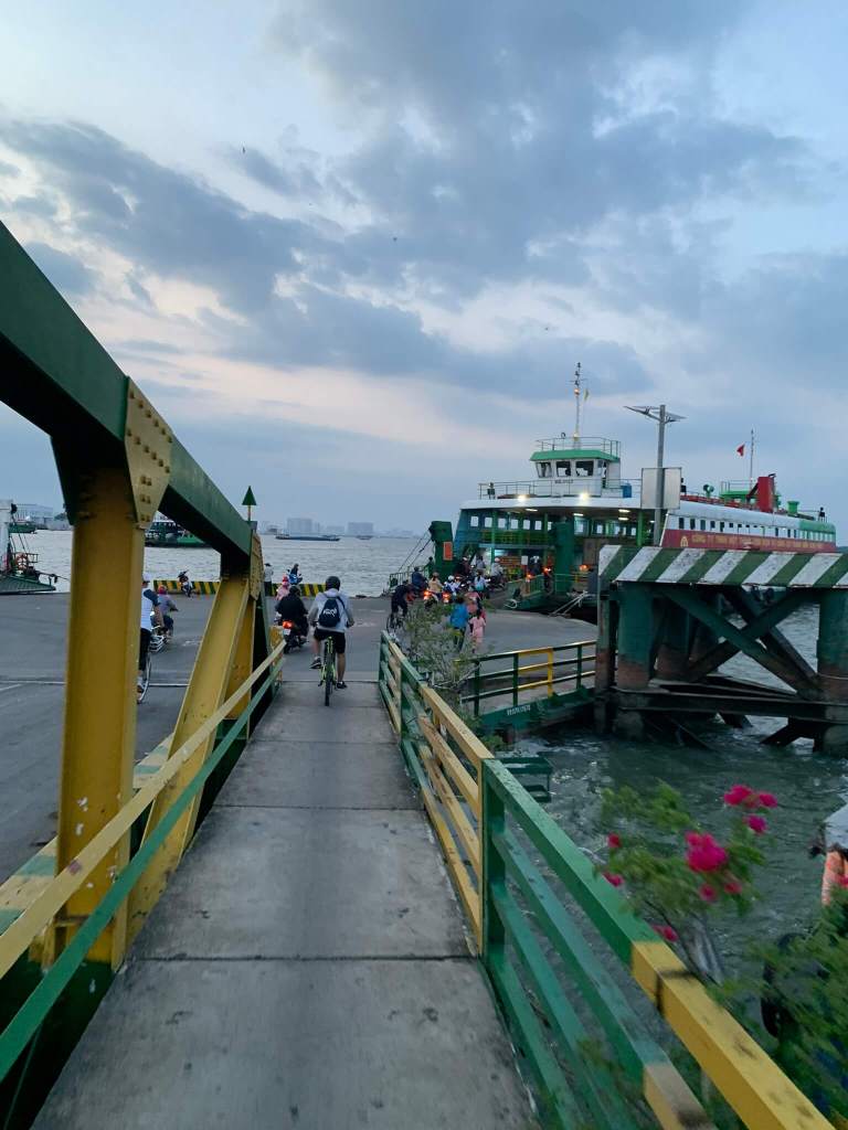 8h00 chính thức di chuyển, 30 phút cho 11km đường Huỳnh Thúc Kháng tới phà Bình Khánh. Thành viên trong nhóm sợ rằng phà không hoạt động vào ban đêm nhưng các bạn yên tâm phá hoạt động 24/24, giá vé 2.000 dành cho xe đạp.