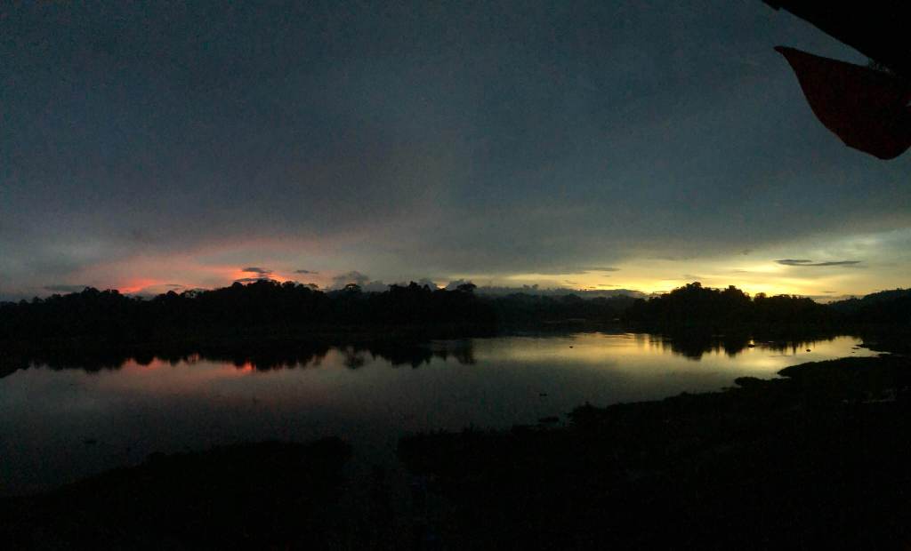 Lần nào tới cũng phải ra ngồi chờ hoàng hôn buông trên Bàu Sấu, mình đang nhìn bầu trời Màu Vàng bên phải thì bất ngờ quay đầu sang trái: Màu Đỏ, bầu trời chia làm 2 màu, lần đầu tiên mình được chứng kiến hiện tượng tuyệt vời như vậy.