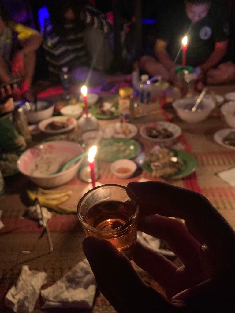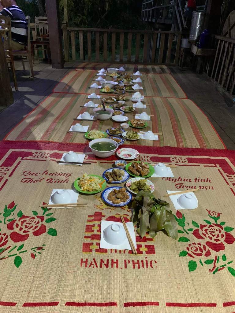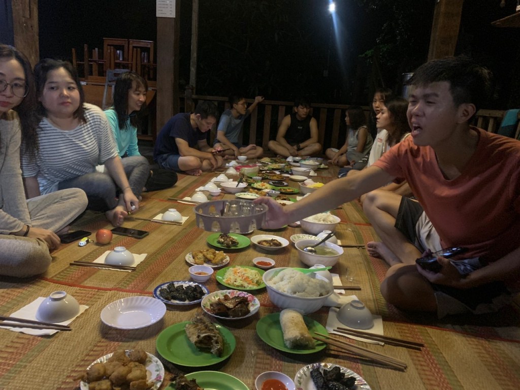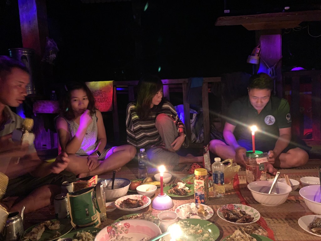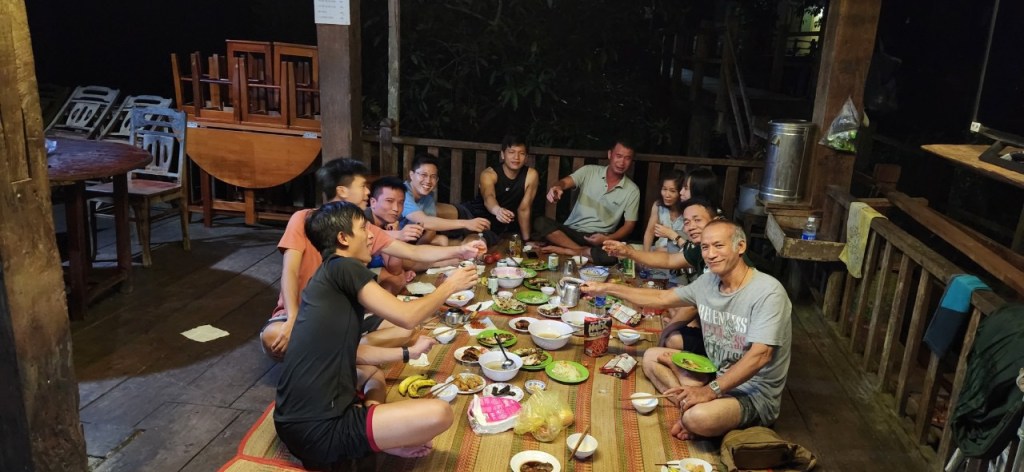 Đã hơn 7h mọi người cũng được quần ăn tối.. sau đó nhà sàn trở thành “quán karaoke bất đắc dĩ” luôn các anh kiểm lâm tắt đèn để bật đèn mờ, chiếu lung linh như trong bar club, sau đó lấy mic ra rồi bật bài hát đã lưu sẵn trong điện thoại, vui thì vui nhưng muỗi rừng chích mình cho bấy hết 2 đùi, về sưng lên, cả tuần sau mới lặn.