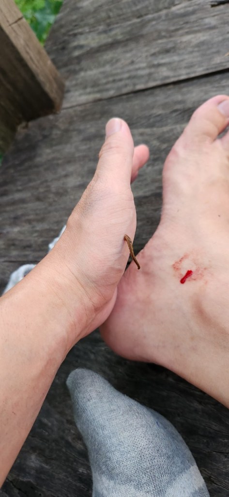 Vẫn còn trong mùa mưa, những cơn mưa kéo dài, bầu không khí ẩm ướt, lá cây rụng nhiều, kèm theo gỗ mục trên đường đi; đó là “bản thiết kế vĩ đại” cho sự sinh sôi của vắt. Đường mòn vào Bàu Sấu giờ trở thành đường vắt, tụi nó có mặt trên từng centimet luôn. Nên mọi người cần bôi kĩ sáp chống vắt vào giày, bôi cho hết giày luôn chứ không phải lấy ra quẹt quẹt mấy cái nha anh chị em.