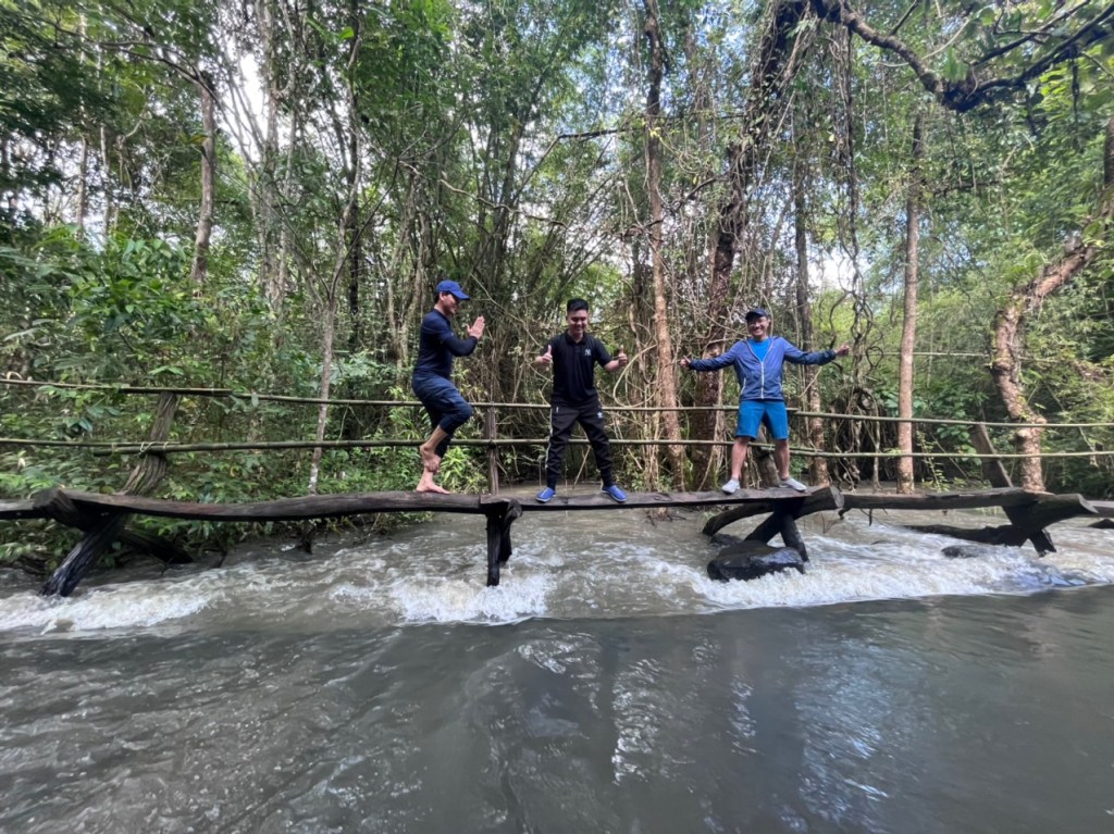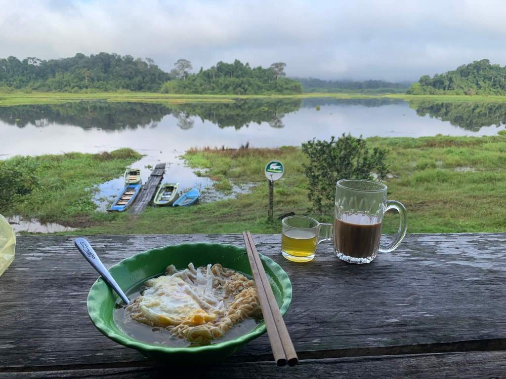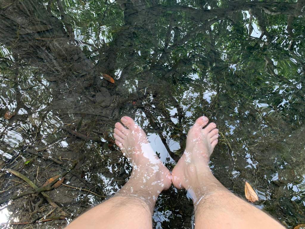 Ăn sáng vội tô mì với rau các anh kiểm lâm trồng vườn bên dưới nhà sàn, rời khỏi Bàu Sấu để đi tới cây Si Trăm thân. Tại cây Si này, mình có thể ngâm chân để tụi cá tới tẩy da chết ở chân hay tắm cũng ổn.