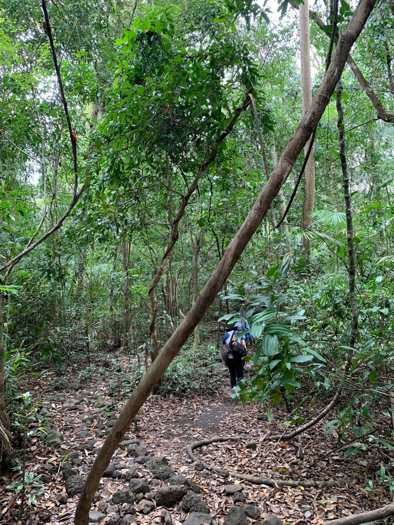Tháng 2 khá khô ráo nên đường khá dễ đi, không có quá nhiều “sinh vật lạ” mùa mưa. Lúc này con đường khá nhiều lá cây do đang mùa thay lá, có nhiều cây cũng đã lên chồi non xanh mướt nhìn từ dưới lên mát con mắt.