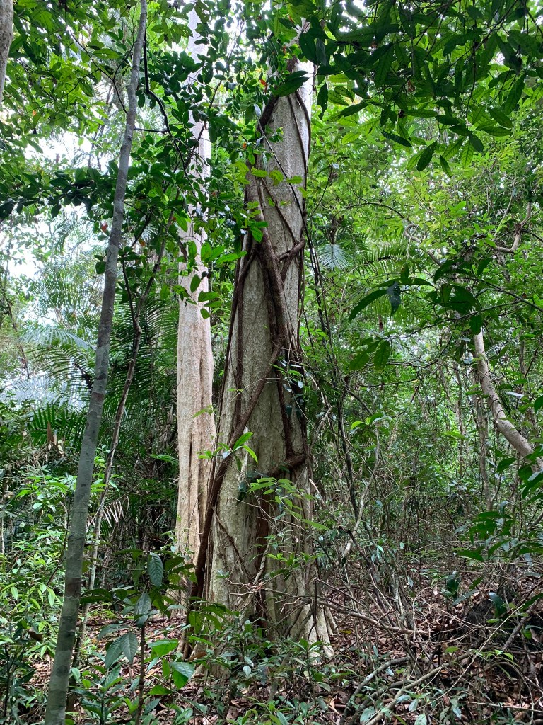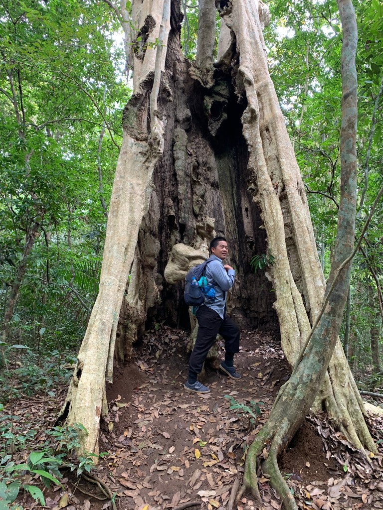 Chuyến đi lần này có hướng dẫn viên nên “quá trình đi” đã có chiều sâu hơn, hiểu hơn về khu rừng, những loại cây cơ bản mọc đa số tại đây như tung, bằng lăng, cây si, đa. Di chuyển bằng xe đạp cũng thuận lợi hơn cho việc dừng lại để đi bộ tham qua “cây tung 400 tuổi”, “cây si 5 gốc”, “cây gõ đỏ bác Đồng”… men theo con đường mòn, anh hướng dẫn cũng chỉ cho tụi mình những nét đặc sắc của cây cối ở đây như cây bằng lăng bị rỗng ruột nhưng vẫn sống; hay bằng lăng đang bị cây đa siết chặt bên ngoài cho tới chết; rồi 2 cây khác loài không hiểu sao “quện” vào nhau thành 1 cây mà sống… nên mình nghĩ mọi người tới Nam Cát Tiên hãy lựa chọn di chuyển bằng xe đạp và đi bộ thay vì đi bằng xe jeep, vừa bảo vệ môi trường, vừa tận hưởng vẻ đẹp của thiên nhiên, cũng như duy trì sự yên tĩnh của cả khu rừng.