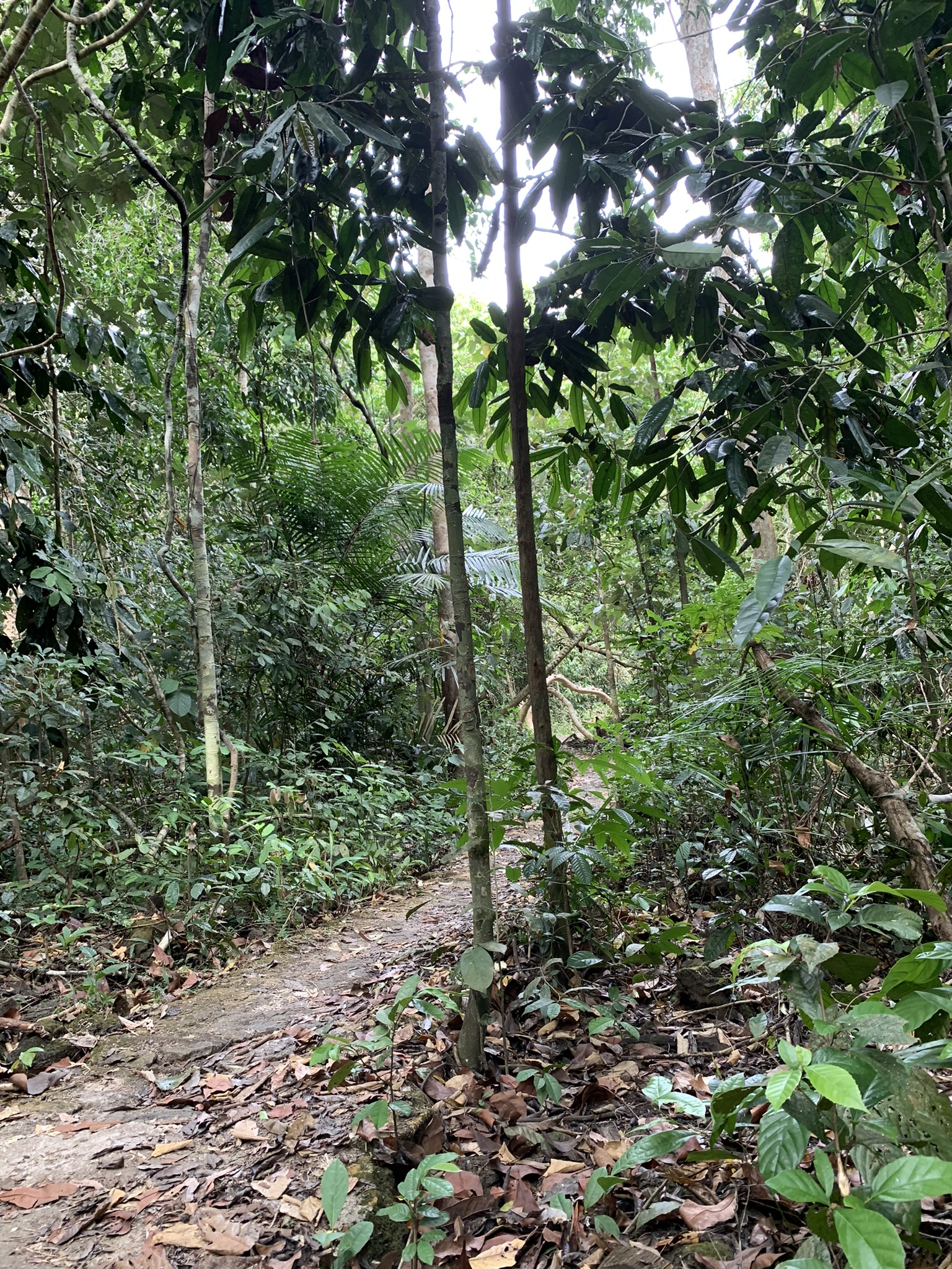 Nhìn cây cối, lớn lên một cách bình tĩnh dù mọi thứ xung quanh có thay đổi như thế nào, mặt trời lên rồi xuống, sáng lại tối, mưa tới rồi đi… vậy “tụi nó có quan tâm tới thời gian hay không?”, “Thời gian có tồn tại ở đây”, hay” tụi nó chỉ tận hưởng giây phút hiện tại?”… à ..chỉ có con người là cần thời gian thôi, để sắp xếp, để lên kế hoạch, để nhìn lại, để lo lắng, để gợi nhớ, và để sân si…dòng suy nghĩ mình tắt luôn khi bị nói “xà lơ”.. ngay lúc đó, ánh sáng chiều len lỏi qua các tầng lá rồi rơi nhẹ trên con đường mòn phủ đầy lá cây mình hít một hơi thật dài cho oxy vào đầy lồng ngực rồi bước đi tiếp…sắp tới rồi.
