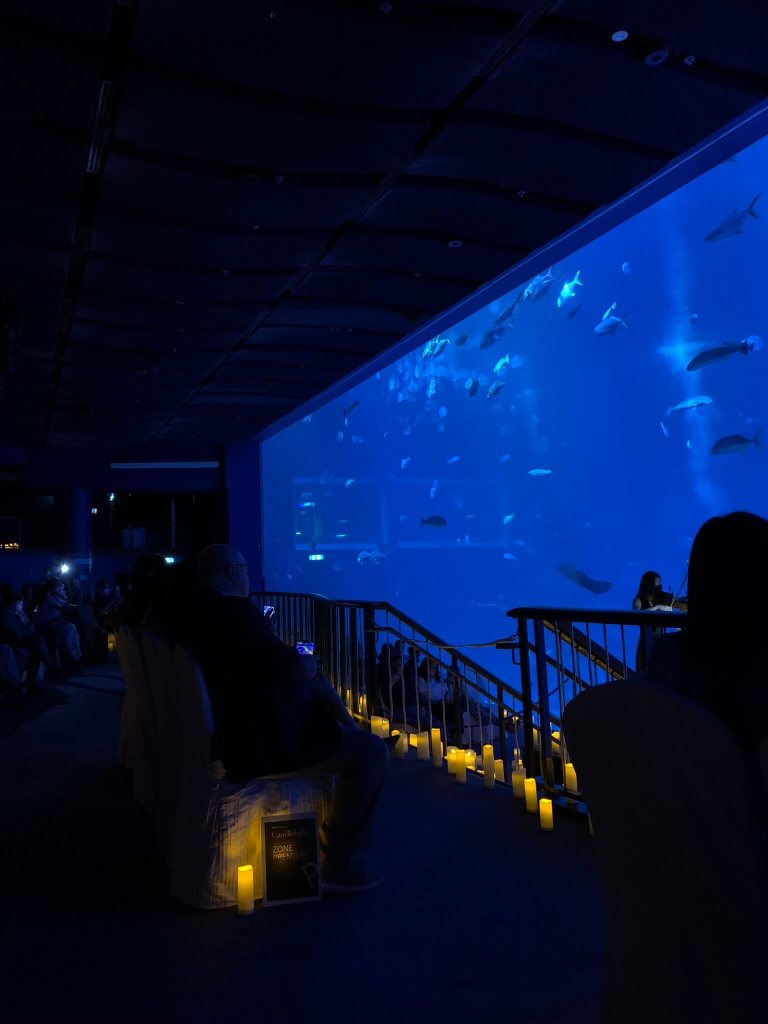 Biết mình thích mấy cái thể loại hoà nhạc, mua cho mình vé nghe four seasons của vivaldi host bởi Candlelight ở S.E.A Aquarium bên Sentosa tối hôm đó luôn, nên mình lên bus tiến thẳng tới đảo Sentosa.