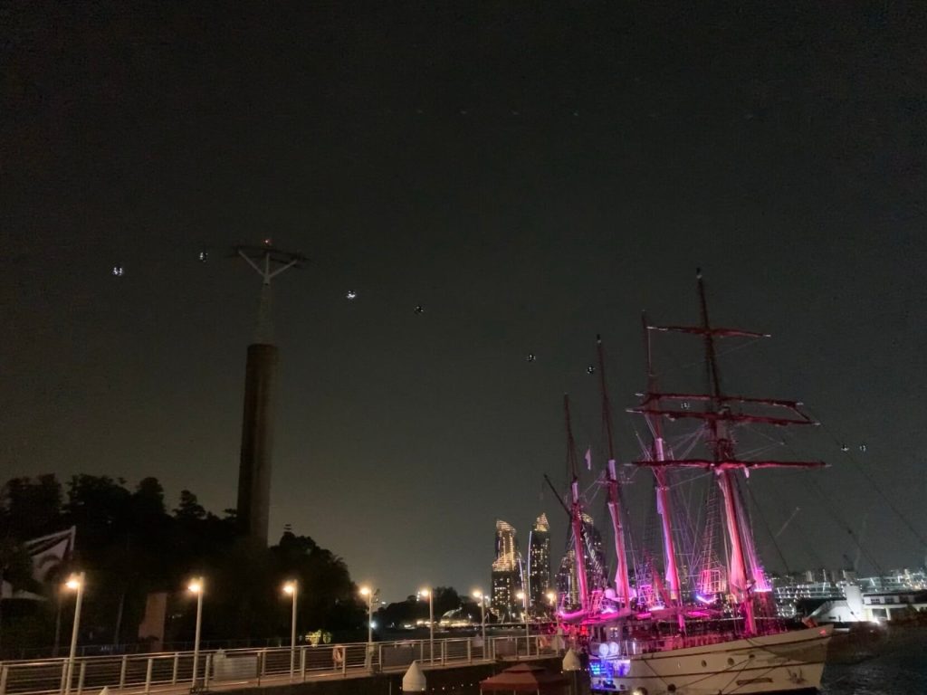 Khu Sentosa này rất rộng, có Universal Studios, viện hải dương, vui chơi giải trí, các hoạt động nghệ thuật, sân goft sòng bạc nói chung tất cả các thể loại ăn chơi nhưng mình chỉ được nghe nhạc và nhìn cá bơi phía sau thôi. 4 người chơi nhạc rất sướng nhưng mình không được quay lại 🙂 chỉ khi kết thúc 4 mùa thì mới được quay một màn chào cuối.