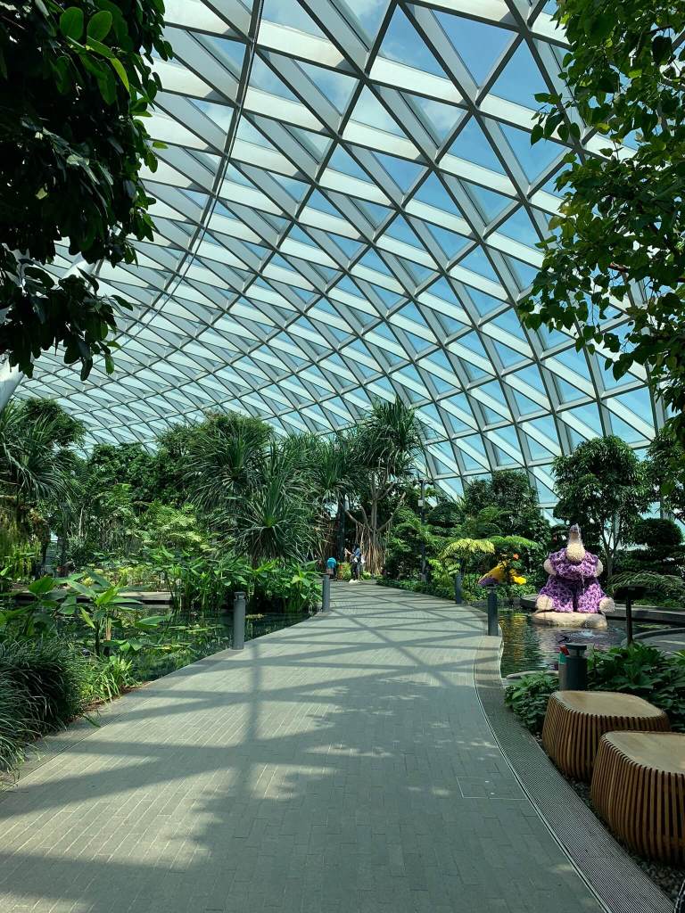 Rồi xong, lật đật kiểm tra cách đi từ sân bay tới Paya Lebar như thế nào, sau mấy phút tìm hiểu thì cũng ok không sao mình tự đi được. Khi tới sân bay, nó nói tao đang đứng chờ ở cổng nè, chắc nghe mình than quá nên nó không đành bỏ mình lang thang. Đi chung với nó ra trạm MRT sẵn dịp tham quan sân bay Changi này luôn, ấn tượng đầu tiên là rất rộng, có tổng cộng 4 terminal, mình đi qua mấy cái terminal thì tới Jewel trung tâm thương mại, điểm check in thác trong nhà, nhà cây, rất nhiều thứ để làm tại sân bay này. Đó cũng là một trong những lý do nó được nêu tên là sân bay tốt nhất thế giới trong nhiều năm liền.