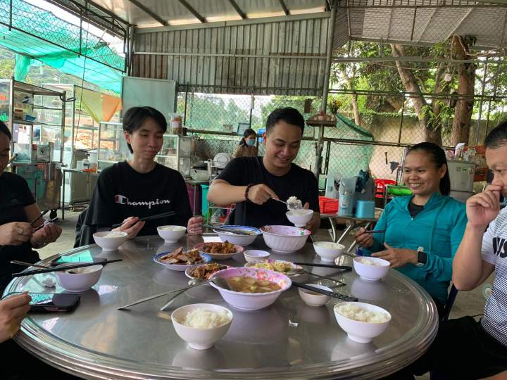 8h sáng mọi người bắt đầu di chuyển từ Suối Tiên chạy thẳng theo hướng quốc lộ 1A, rồi quốc lộ 55 như tìm hiểu trước đó, sau đó dừng ăn trưa ở Tà Pao tiện mua vài thứ ở chợ Tà Pao.