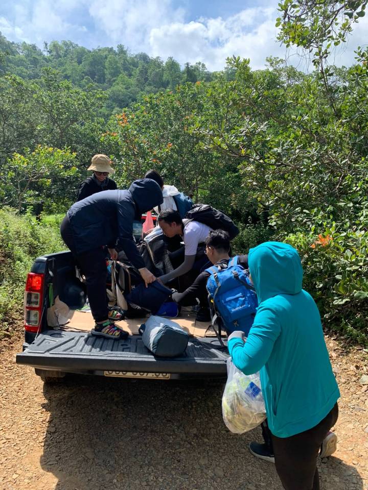 Cứ nghĩ đường vào sẽ khá khó khăn nhưng thấy xe hơi chạy vào liên tục thì chắc chỗ này cũng đã nổi tiếng lắm rồi. Đi được chưa đầy 100m một chiếc xe bán tải kêu cả đám lên chở vào cho khỏe, thật sự thì Hằng có vẫy tay nhưng nào ngờ họ cho lên thiệt còn gì tuyệt vời hơn.