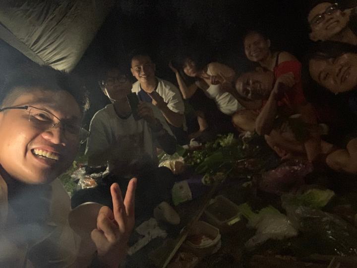 Cuối cùng mọi thứ cũng ổn, mọi người quay quần uống rượu, ăn thịt nướng và cơm lam. Khu vực này đứng gió, nên càng về đêm càng nóng. Ngồi chút mà cũng 10h hơn, mọi người dọn dẹp cho gọn lại và vào lều, khép lại một ngày nhiều cảm xúc.