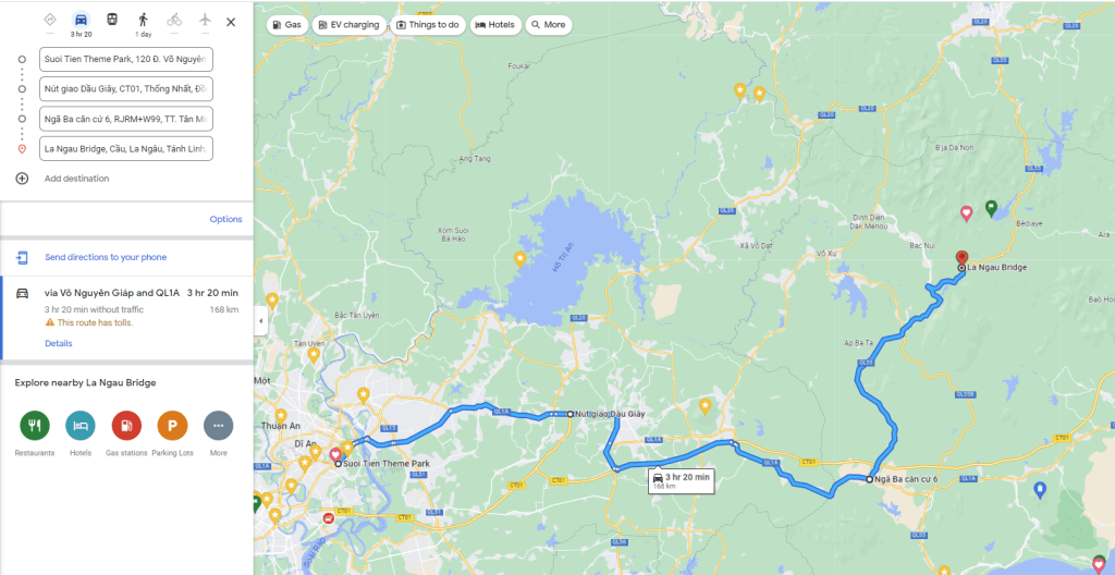 Về nhà điều tra địa điểm này như thế nào, rút kết: khá gần Sài Gòn, 180km di chuyển mất 3.5 tiếng quốc lộ 1A , xuyên Đồng Nai, tới Ngã Ba Căn Cứ Sáu, đi thẳng quốc lộ 55, qua đức mẹ Tà Pao, tới cầu La Ngâu, Tánh Linh Bình Thuận là tới.
