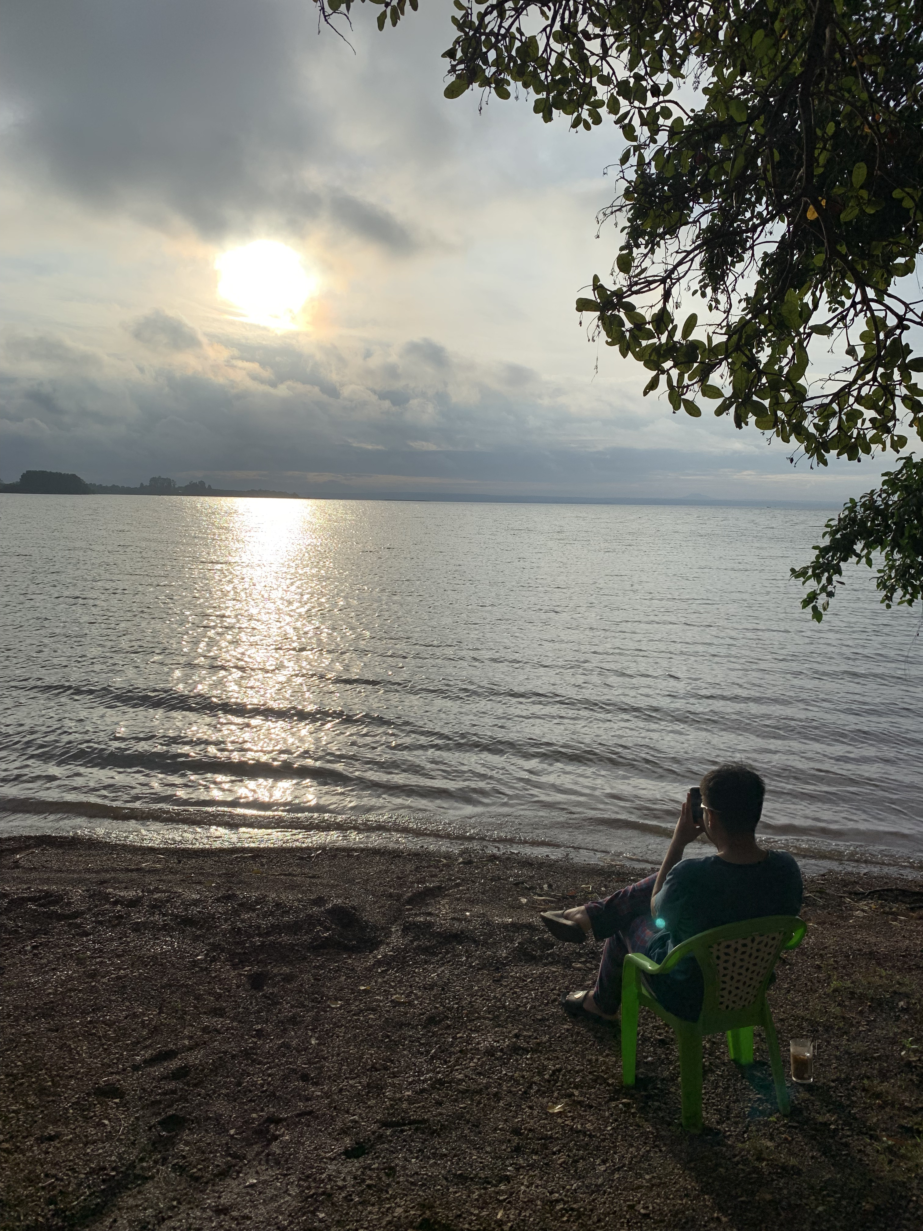 Sáng hôm sau, trong khi mọi người đã dậy thì mình vẫn nằm trong lều, cho tới khi nghe tiếng réo ra ngắm bình minh thì mới từ từ mở lều ra ngoài. Mình lấy vội cái ghế, ly cà phê sữa rồi ngồi nhìn sóng vỗ vào bờ, mặt trời lên từ từ, độ nóng của nắng tăng dần khi mặt trời lên càng cao.