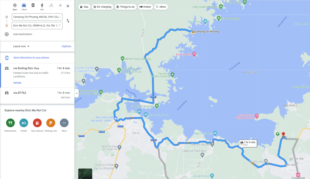 Ra khỏi rừng tụi mình men theo con đường đi quanh hồ Trị An theo hướng dẫn của chị Google, nhưng lần này chị Google chỉ đường tà, hướng dẫn vào đường ruộng, đường rẫy, đường bỏ hoang lâu ngày cỏ mọc lên không ai chạy cũng chỉ luôn. Cả đám hoang mang quay lại đường lớn cứ theo đường lớn24h lang thang tạm kết thúc tại đây 🙂 mà đi.