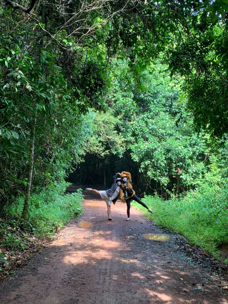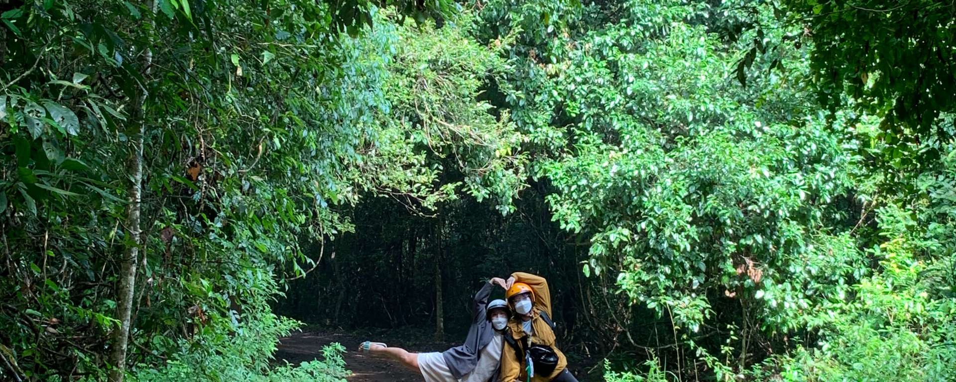 Gần 6h thì nhóm cũng đã chính thức vào rừng, đường rừng đất đỏ giờ còn có thêm nhiều vũng nước chặn giữa đường do mưa lớn mấy ngày qua. Thật sự mình nghĩ cứ chạy qua đại đi, kệ, tới đây rồi đâu còn đường nào về đâu, chạy nhưng vẫn sợ nước vào bugi xe ngừng giữa rừng, biết kêu ai ra mà sửa. Sau khi vượt qua “con sông” bình an, 30 phút tụi mình cũng tới chỗ nghĩ kế bên hồi. Con xin cảm tạ trời đất rất nhiều.