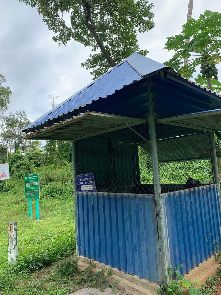 Con đường dẫn vào thác Gia Long 2 bên đường đều là rừng và…càng vào sâu điện thoại mình cũng tèo luôn cột sóng, ai chỉ còn sóng của Viettel mà thôi. Tại đây lại xuất hiện chốt bán vé nhưng may mắn cho cả nhóm khi anh bán vé biến mất và cũng chẳng có ai ở đây. Thấy vậy anh tài chở vào bên trong luôn, thả ngay đường mòn, ảnh nói đi theo con đường này là thấy 2 con thác, tham quan rồi quay lại đâu đó 30 phút.