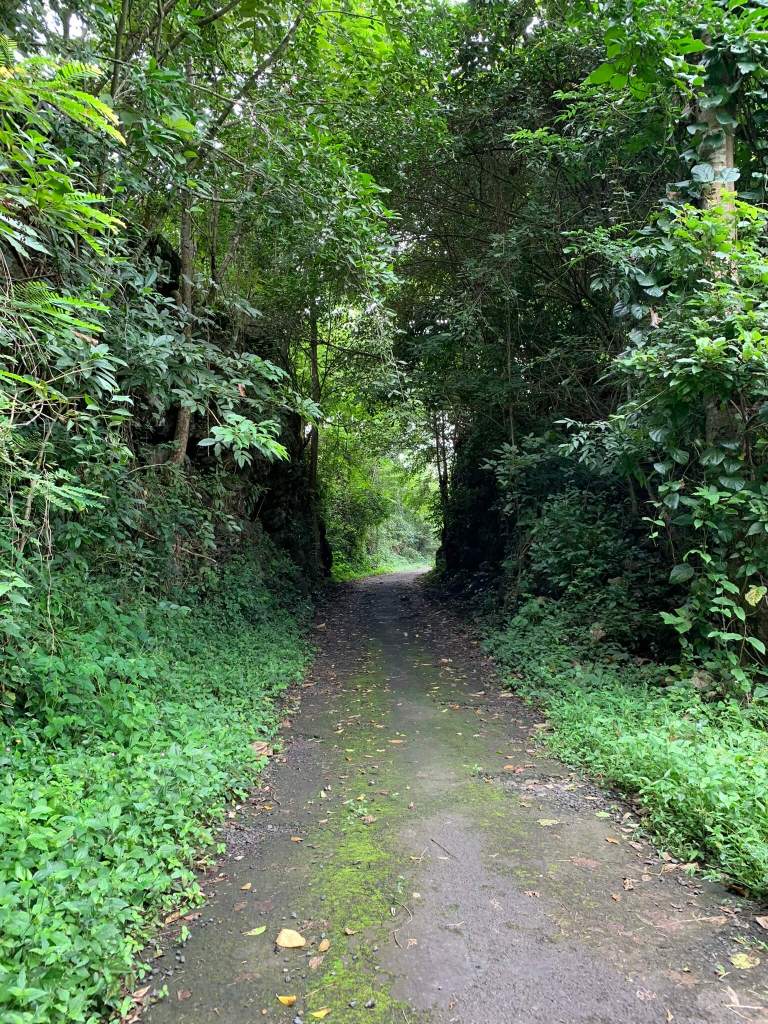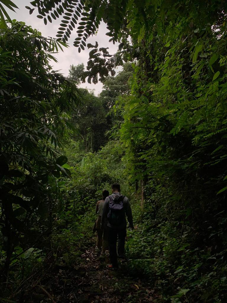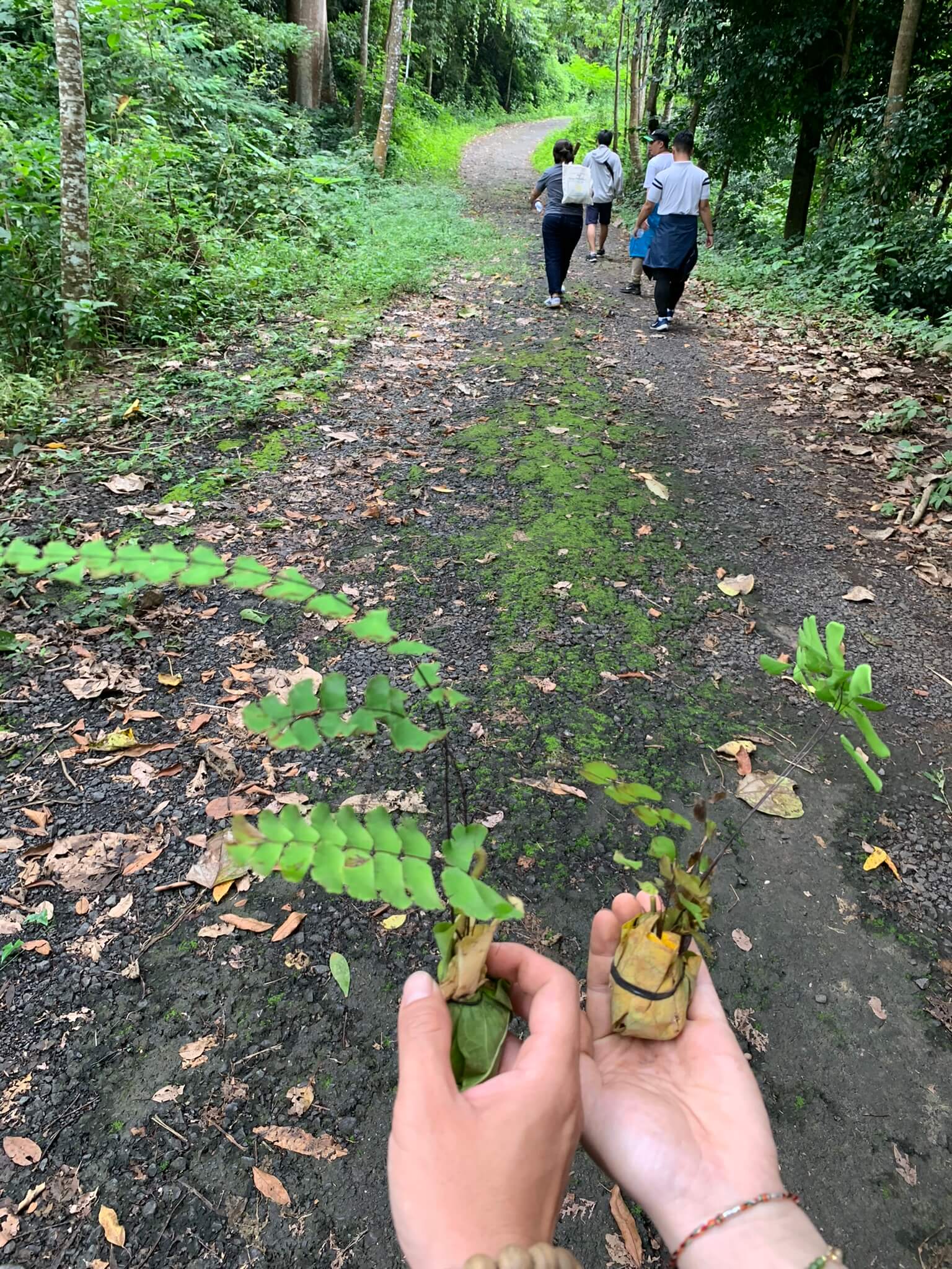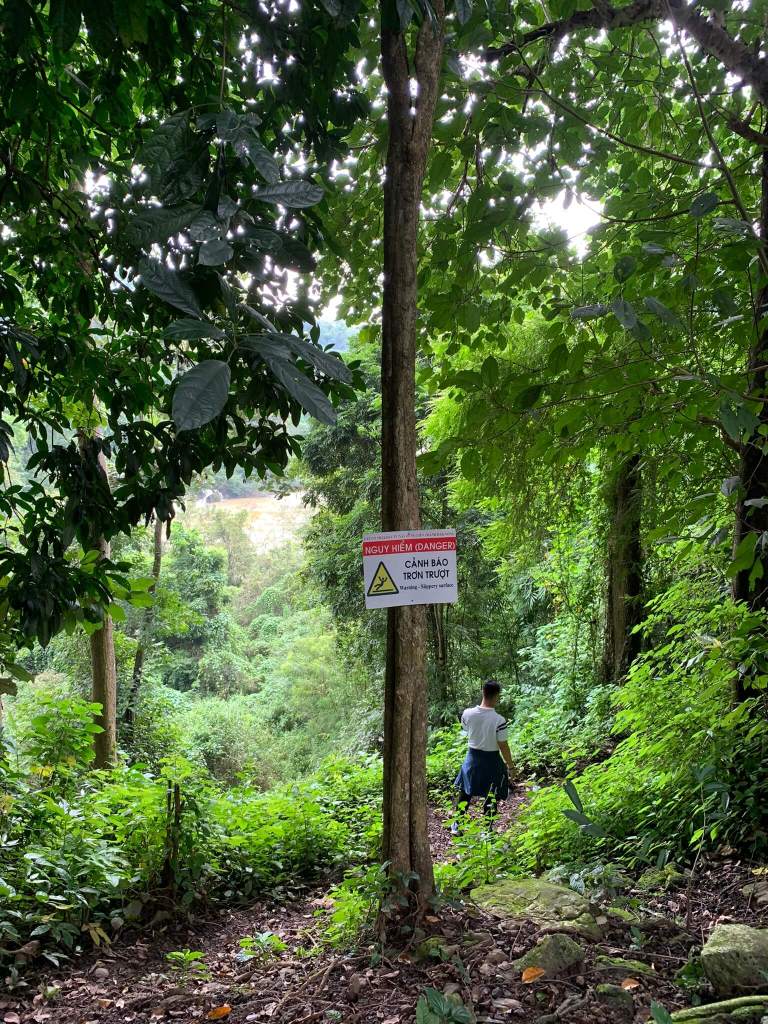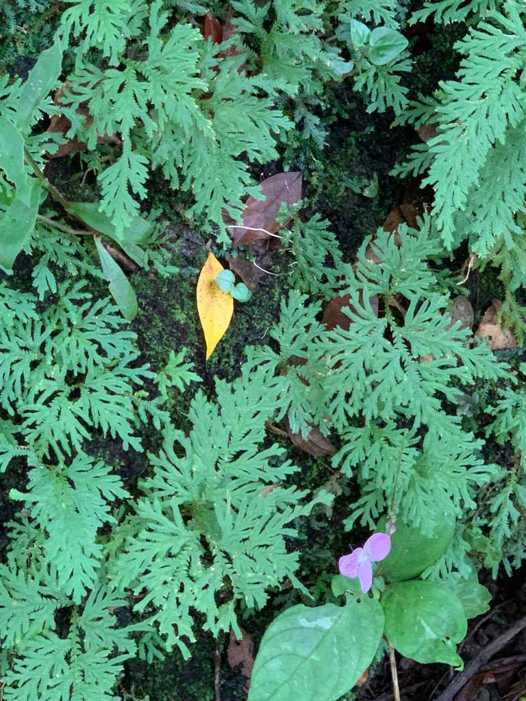 Đường mòn nhỏ, ánh sáng không rơi xuống nổi, trời cũng lại đang muốn rơi nước mắt. Hai bên đường dương xỉ, cây cỏ mọc rất đẹp, rễ tụi nó bám chặt vào đám đá cứng ngắt không hiểu dinh dưỡng ở đâu mà vẫn xanh tốt, mình và 2 người bạn tập trung hái cây mang về nhà nên bị bỏ lại tít đằng sau so với nhóm đi xuống tham quan thác Lụa.