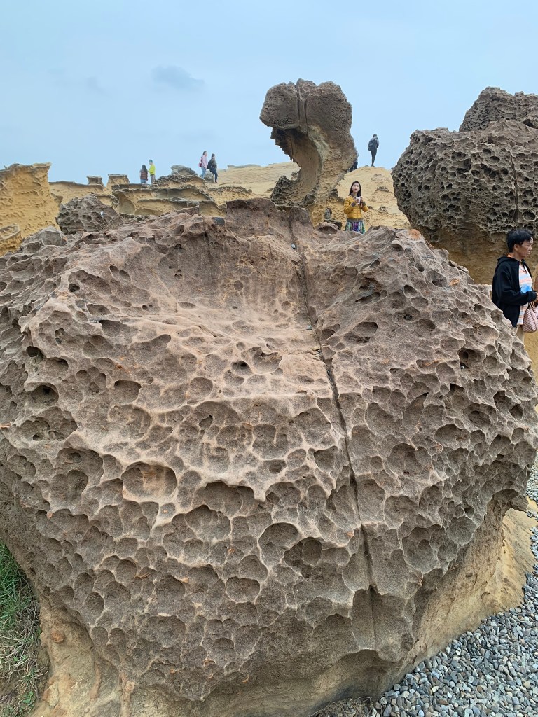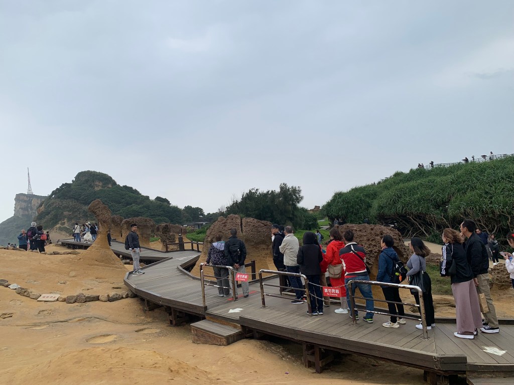 Mình nghi ngờ có khi Đài Loan cố gắng là sao chỉnh cho khớp thành đầu nữ hoàng rồi quảng cáo du lịch, nhưng mọi người đều nói hoàn toàn do tự nhiên tạo nên 100%. Nói chung nghe vậy thôi chứ chưa thuyết phục lắm, các nguồn tin khác mình được nghe có thể 10 năm nữa cổ nữ hoàng sẽ rớt xuống do thay đổi địa chất. Trời vẫn ui ui không có tý nắng, đường bờ biển sóng vỗ vào bờ khá mạnh, thời tiết vẫn không ủng hộ tụi mình.