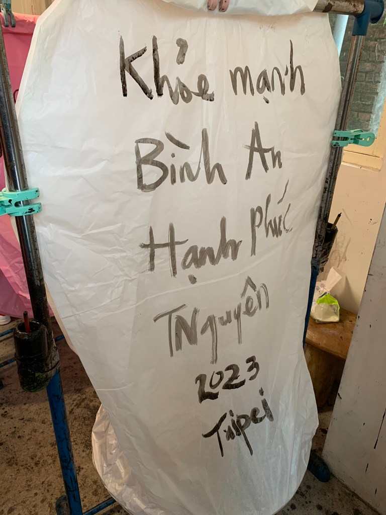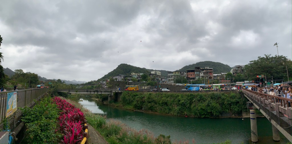 Vừa qua cầu chuẩn bị quẹo trái để vào phố cổ có 1 cửa hàng quà lưu niệm viết chữ tiếng Việt rất lớn. Cứ ngỡ cửa hàng này Việt Nam nhưng người bán người Việt, còn chủ người Đài, không biết nói gì luôn. Đây cũng làm nơi tụi mình ghé mua áo mưa, áo mưa bên đây cực kì thời trang cứ tưởng đang mặc măng tô, bao đẹp.