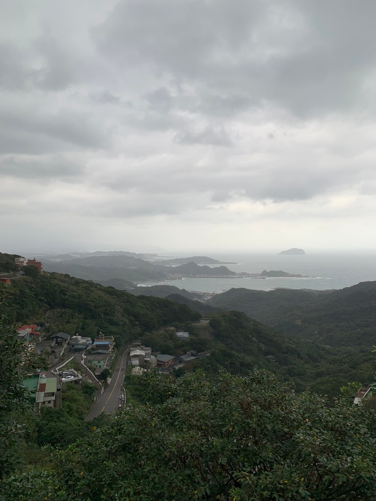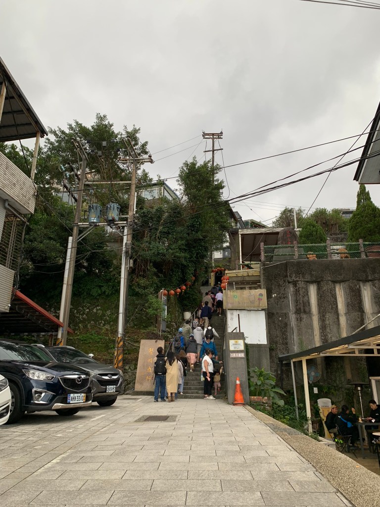 Đi dạo hết Thập Phần thì mưa lớn, tụi mình trú mưa rồi di chuyển ra xe để đi tới Cửu Phần. 2h chiều đã có mặt ở Cửu Phần, vừa bước xuống xe gió thổi teo người luôn, nơi này mình thấy kiểu Đà Lạt nhưng có điều làng Cửu Phần dựa núi và view biển. Bạn hướng dẫn nói đường đây hơi khó đi sợ lạc nhưng thật sự thì nó không khó đi tí nào chỉ là có 2 đường lên theo trục ngang dọc và giao nhau thôi. Mình đi theo nhóm tới khúc giao giữa 2 đường thì mọi người đi tự do khám phá sau đó quay lại đúng 4h20 là được.