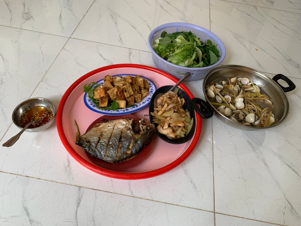 Chị thì vừa xẻ trái bom vừa nói chuyện video call với con hiện đang ở nhà nội, kêu mình vào nói chung cho vui. Cũng hơn 7 năm từ lần cuối mình ngồi chung đủ cả 2 vợ chồng như vậy, nhân dịp quan trọng vậy nên chị chủ động vào bếp nấu những món chưa bao giờ nấu, nghe là thấy sợ rồi.