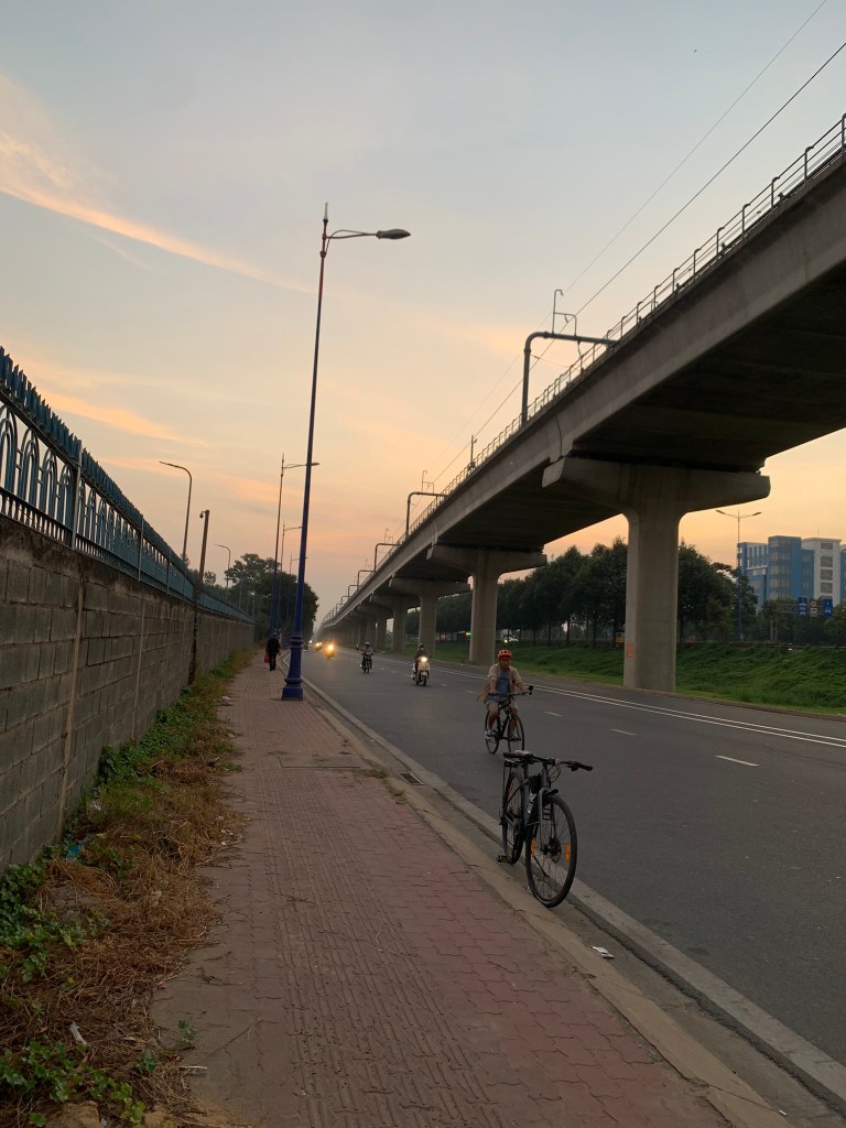 Thả dốc Thủ Đức hướng Công Nghệ Cao luôn là điều tuyệt vời nhất khi chạy xe đạp về nhà, mọi thử thách tới khúc này xem như đã hoàn thành hết rồi. Trước khi tới cổng chính công nghệ cao là trường đại học Hutech, 500m phía trước cổng trường xe đẩy đồ ăn thức uống nhiều như đang đi chợ đêm khu đại học quốc gia hồi xưa, ai cũng có chỗ đứng phân chia rất rõ ràng nhưng giờ….mỗi người một nơi, tan tác hết, có xe thì núp phía sau hàng rào, có xe đẩy thì chuyển sang làn ngoài của xa lộ Hà Nội, có xe thì đẩy hẳn tới cột đèn xanh đèn đỏ… việc chạy “trật tự” đã quen với bà con bán ở đây rồi, mọi người phản ứng rất nhanh. Sinh viên có đứa vẫn còn ngồi trên cái ghế ngồi ăn, uống như không. Không biết mỗi lần “quét qua” mấy cô chú có kịp lấy tiền bán của mình chưa?