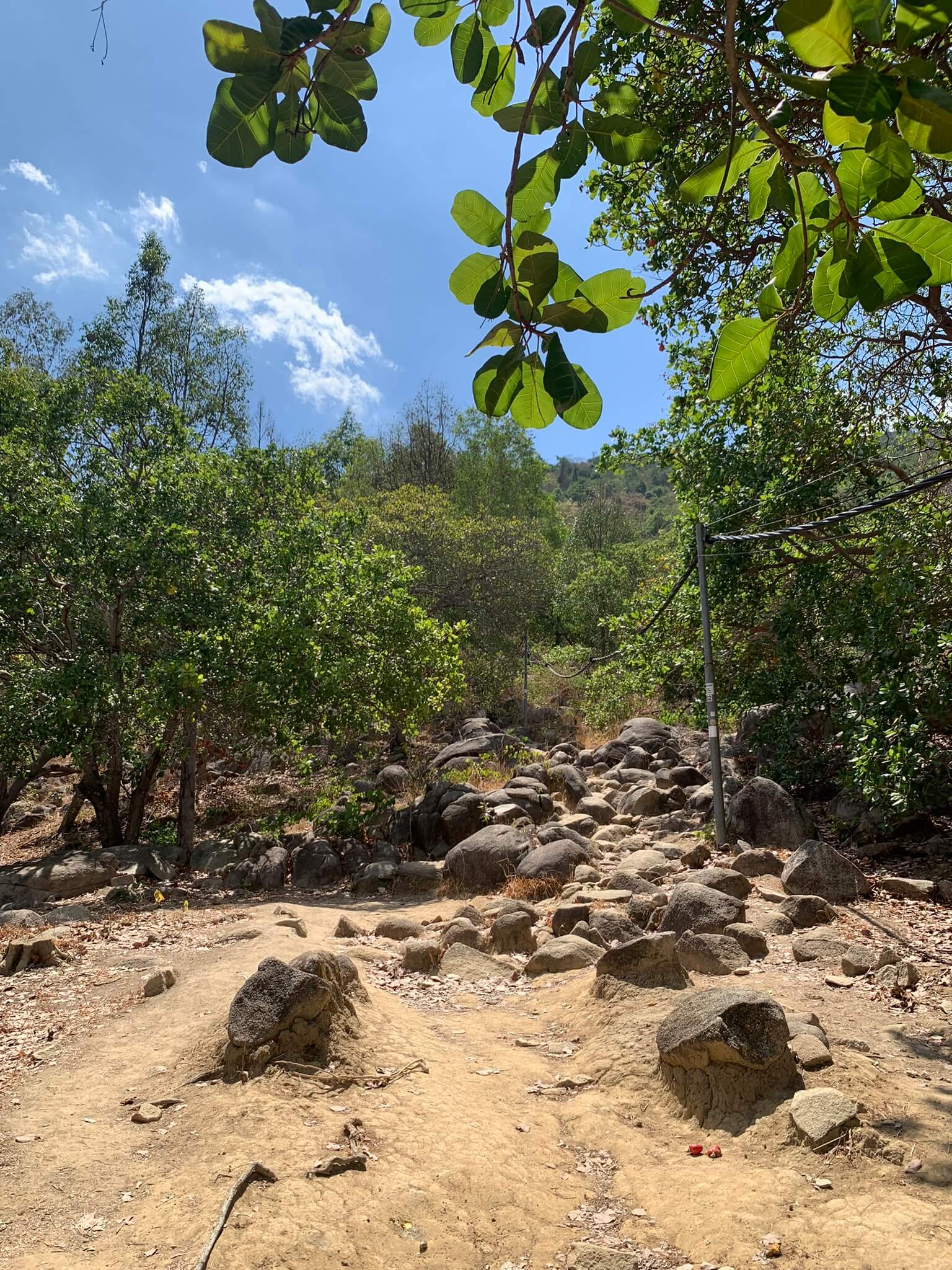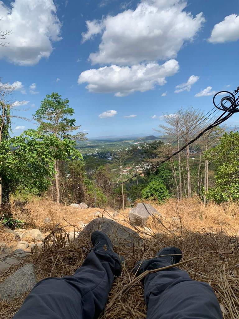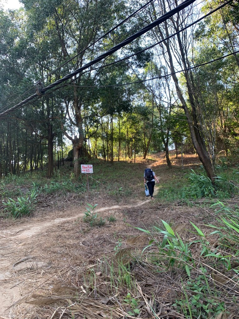 Bắt đầu di chuyển khỏi quán cà phê chị Yến lúc 1h30 trưa, trời quang một màu xanh rất đẹp, nắng thì lan tỏa vàng đều rải trên nền đường, và nhiệt độ feel like 38-40 độ. Cũng không có gì quá ngạc nhiên là không có ai đi chung với 2 anh em giờ “linh thiêng” này hết mặc dù khi nãy mình để ý là cũng có gần 20 người đang ngồi ở quán đường cột điện sẽ lên đỉnh cắm trại tối nay, loáng thoáng nghe đâu đó 4h chiều mới các nhóm mới bắt đầu đi lên để né cái nắng.