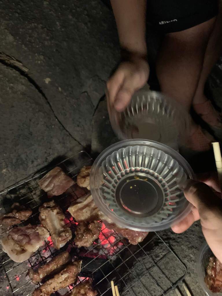 Cái vỉ nướng có vẻ hơi cao so với đám than hồng đều bên dưới, thịt sẽ lâu chín lắm đây nhưng có điều sẽ không có bị cháy. Thôi dù gì cũng có làm gì đâu, ngồi lật rồi chờ giết thời gian cũng ok. .