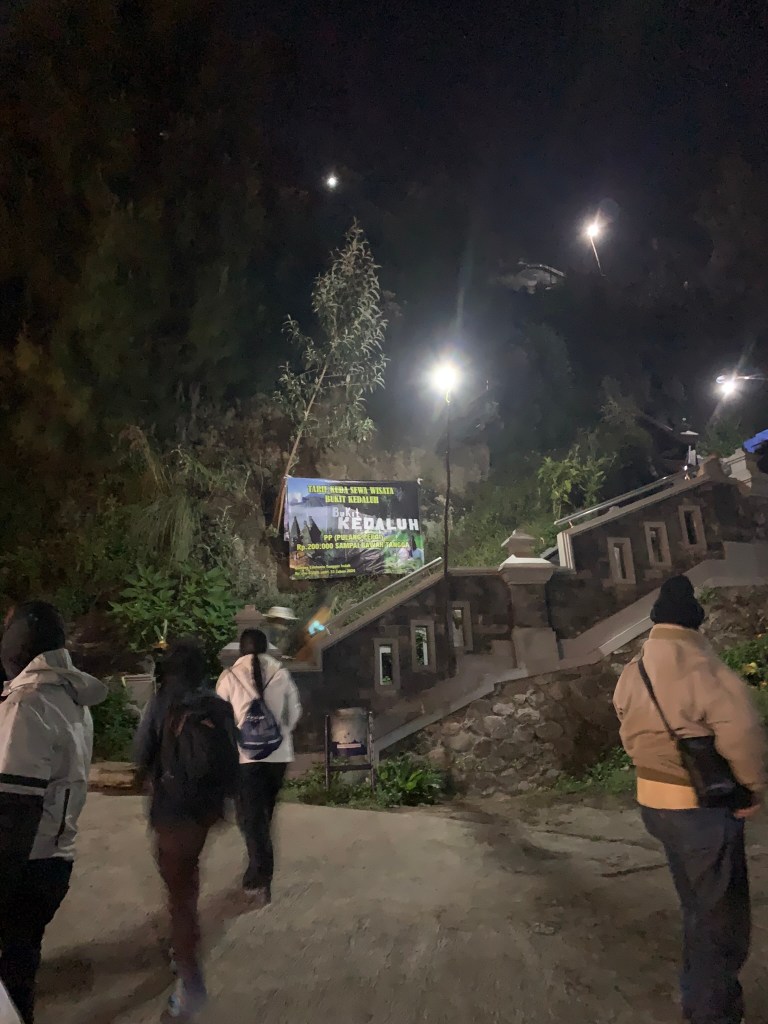 Sau 2 tiếng di chuyển xe từ khách sạn tới chân núi, mất 1 tiếng để đi tới địa điểm ngắm bình minh núi Penanjakan.