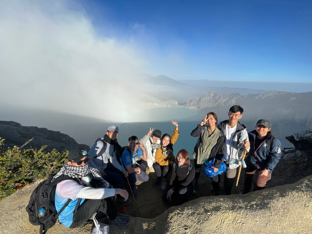 Tới ngã 3 thì có 2 đường, nếu đi bên trái 0.7km đi xuống miệng núi lửa để xem lửa xanh, còn chọn bên phải thì tiến thẳng lên điểm check view để thấy toàn cảnh miệng núi lửa. Nó chọn đi cả 2, nên sẽ đi xuống xem lửa trước sau đó đi lên ngắm toàn cảnh.